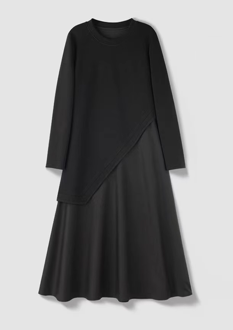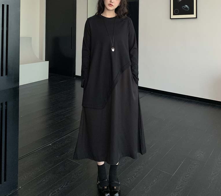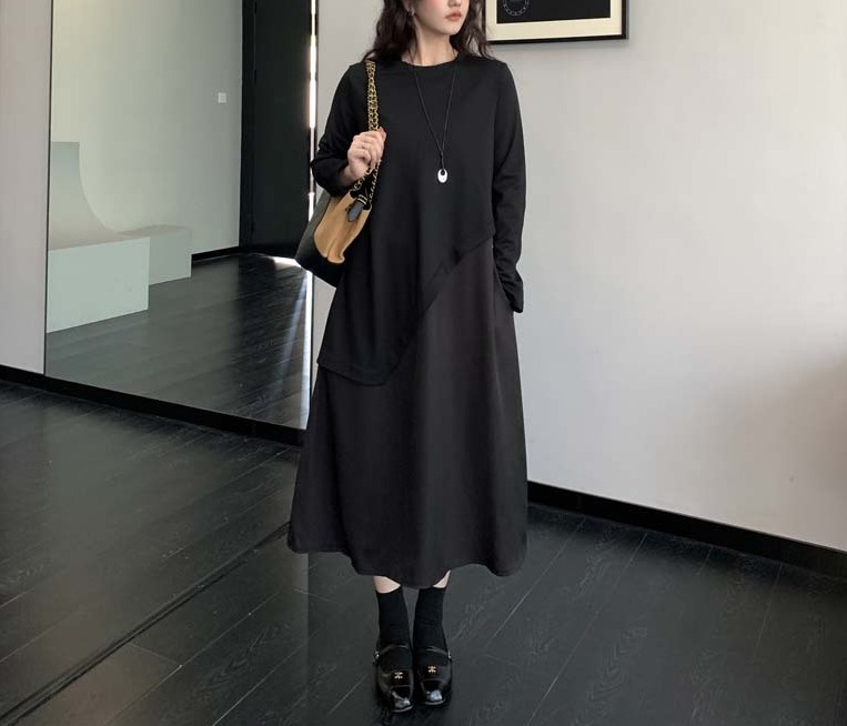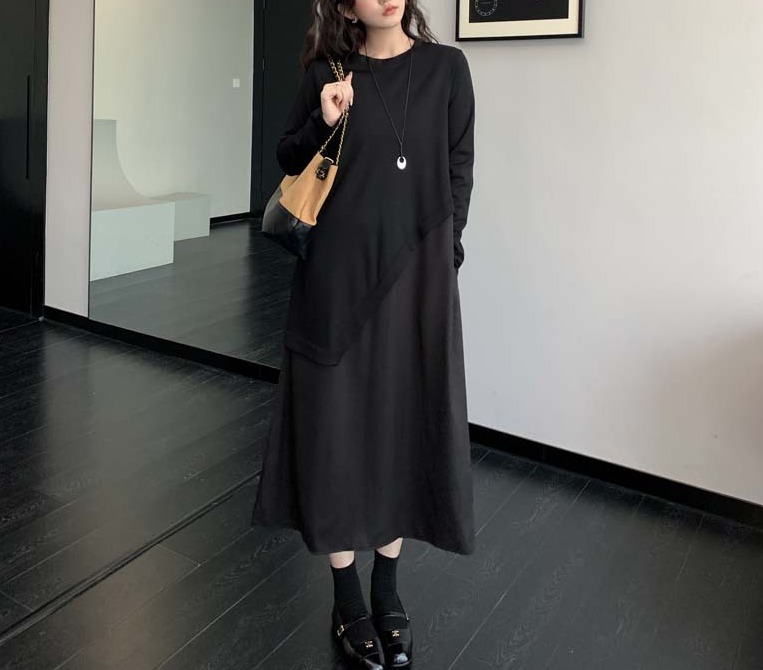 レイヤード風 無地 プルオーバー ドッキング ニットワンピース