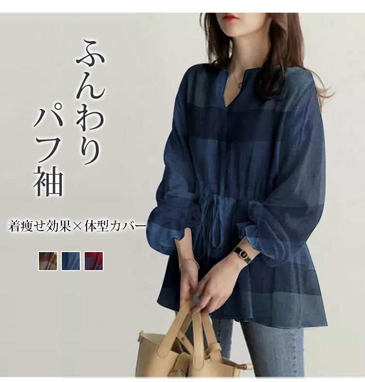 大注目 カジュアル シンプル パフ袖 ブラウス