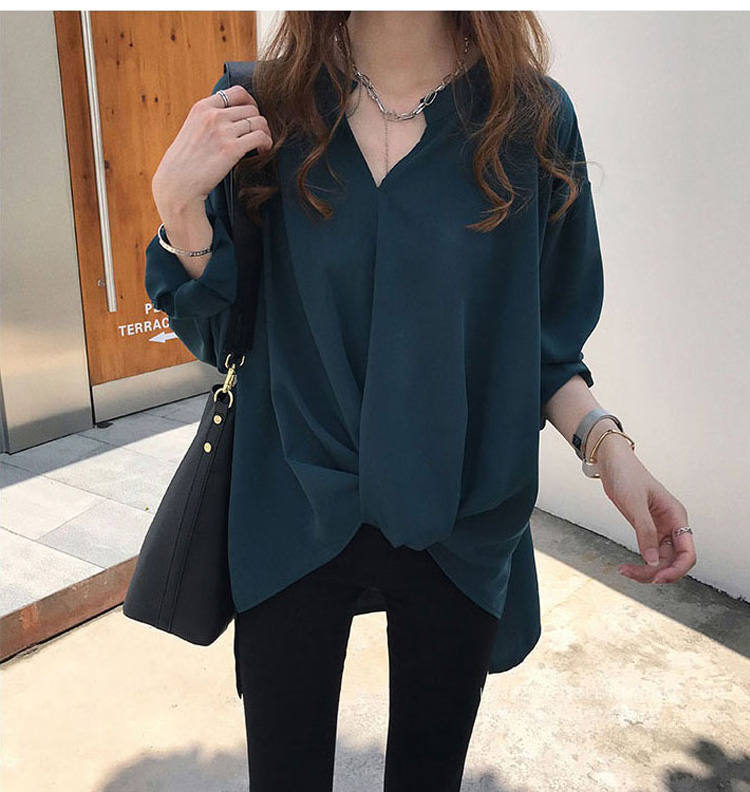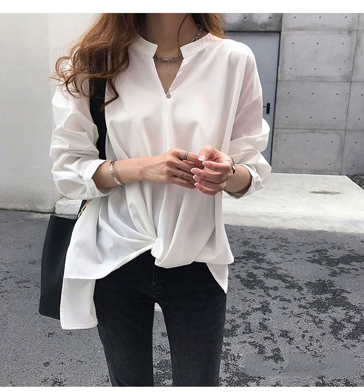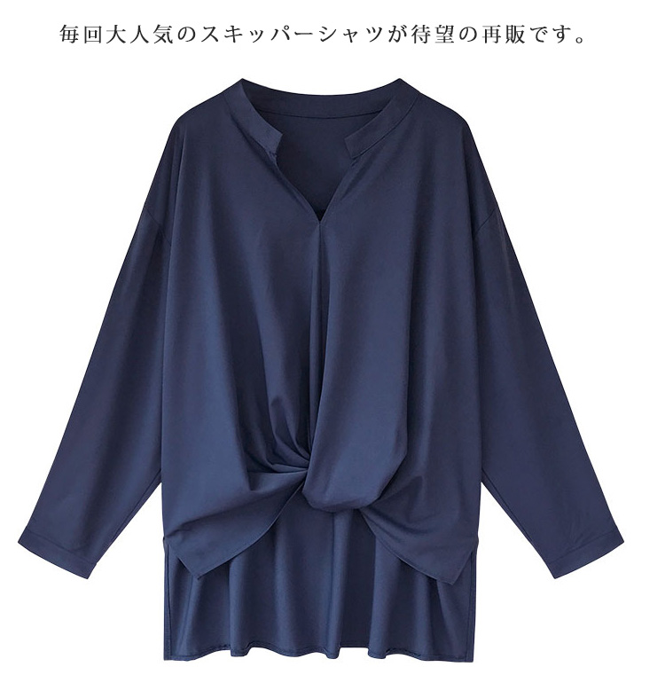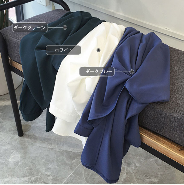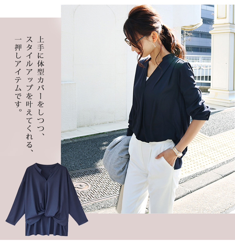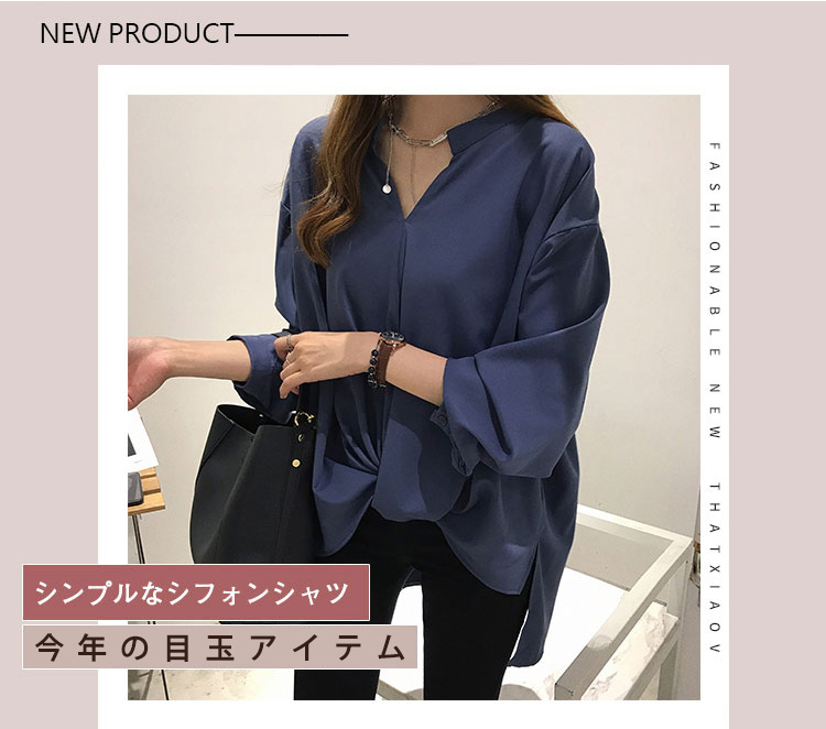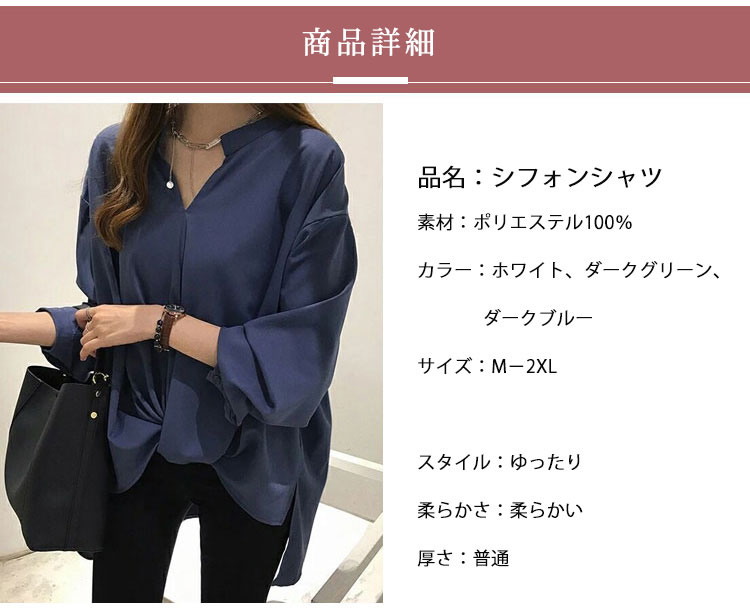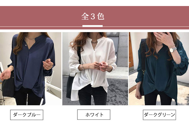 前結び風 ノーカラー レディース オン シフォンシャツ