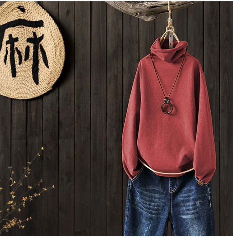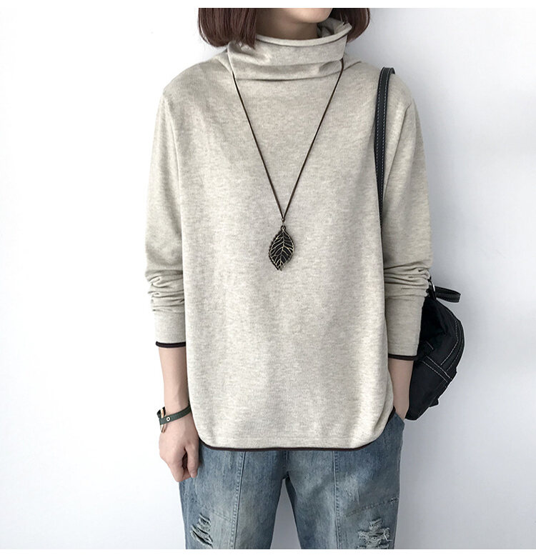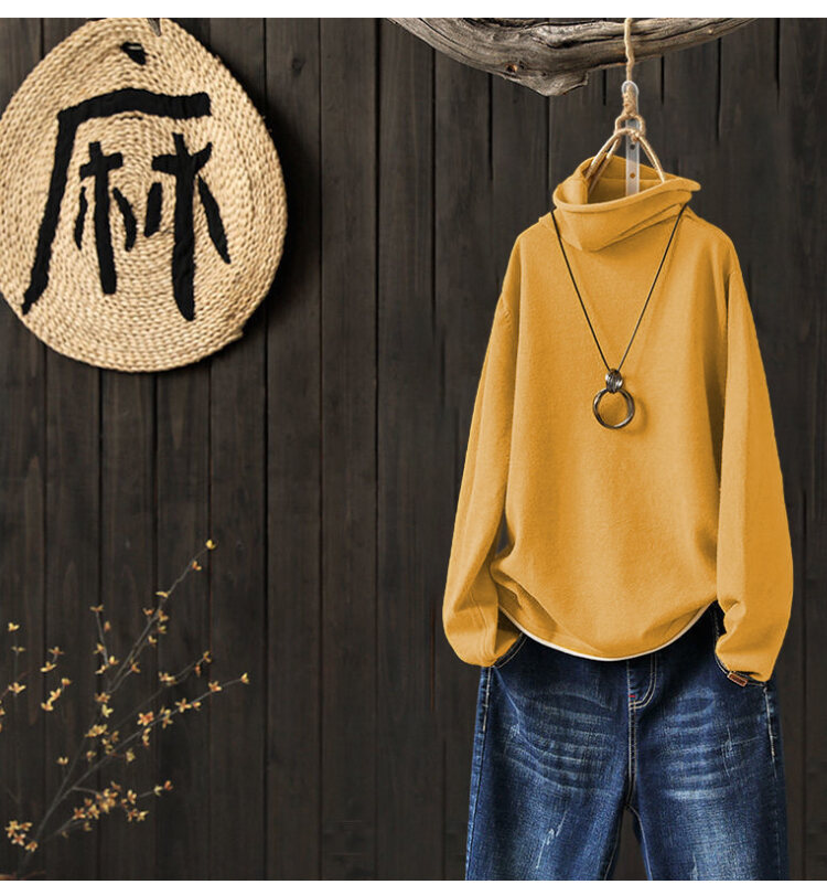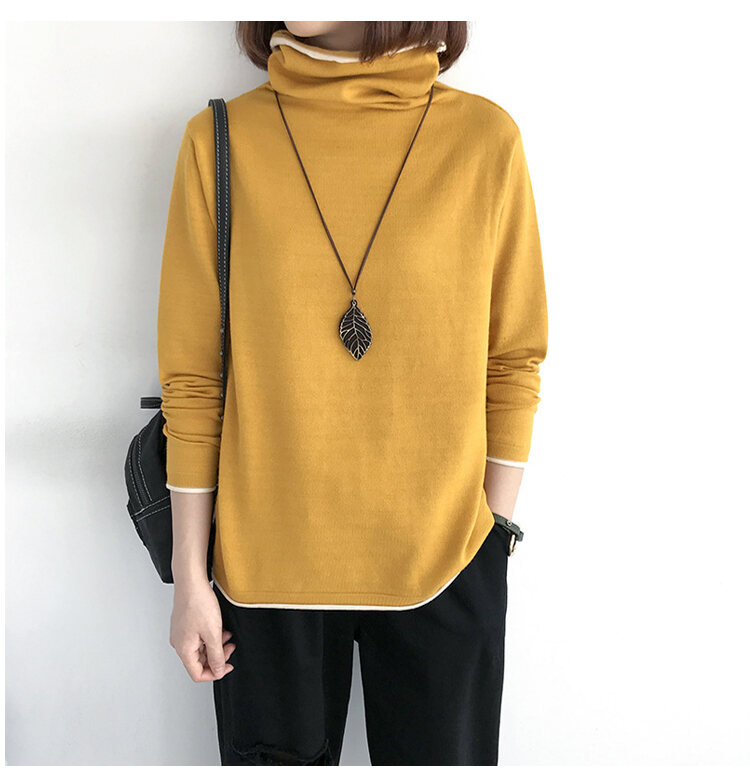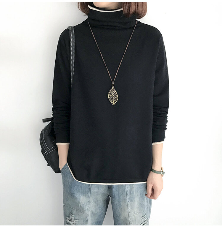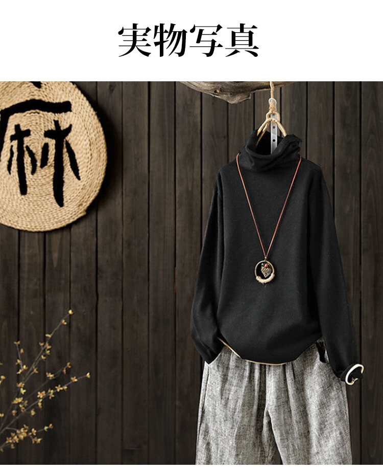 大人度アップ ハイネック 無地 ルーズ ニット