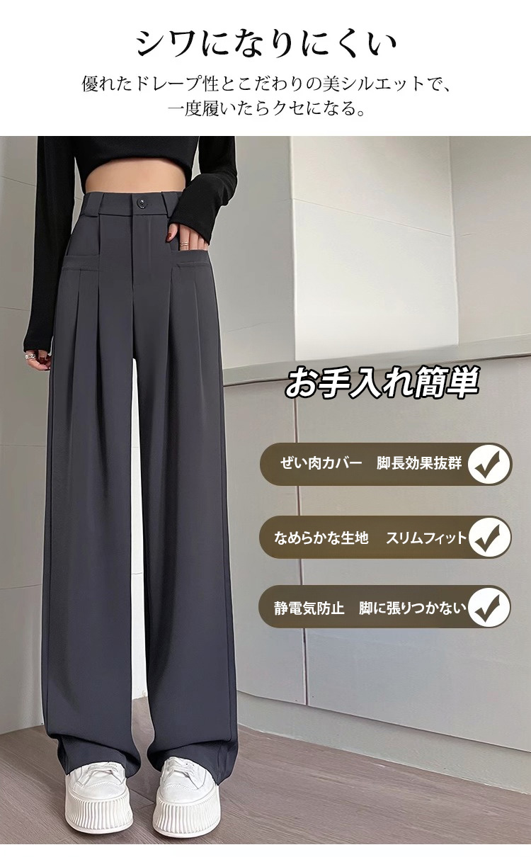 ルーズ 無地 裏起毛 厚手 ウエストゴム ワイドパンツ