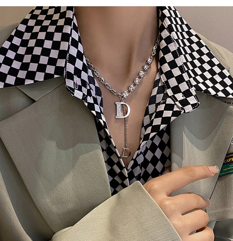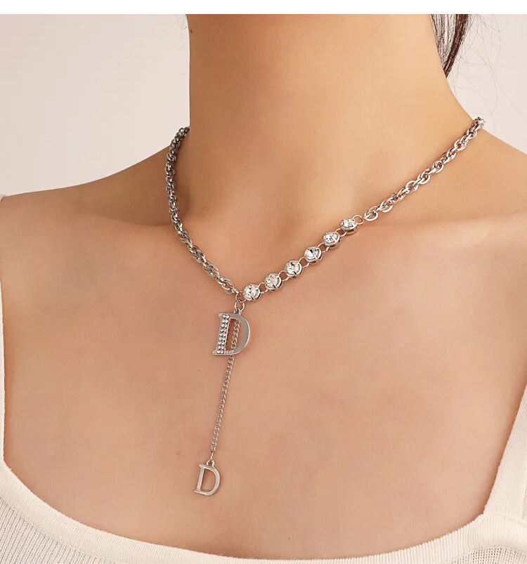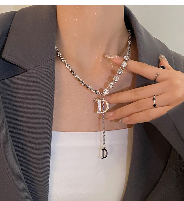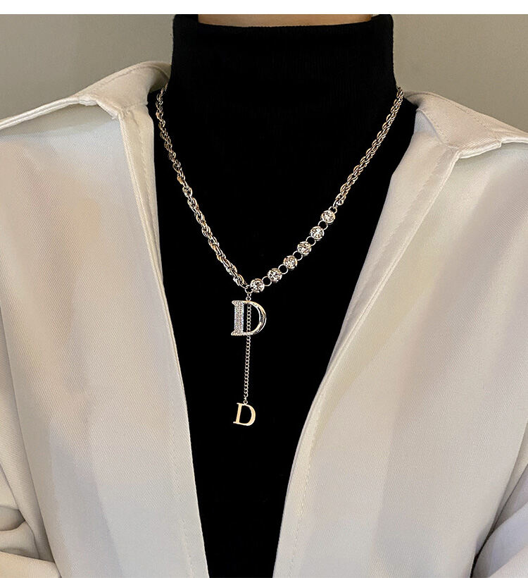 質感注目させ 無地 高級感頭文字D ネックレス