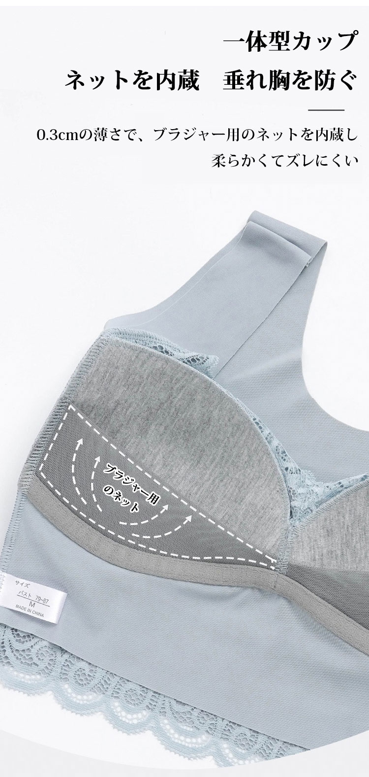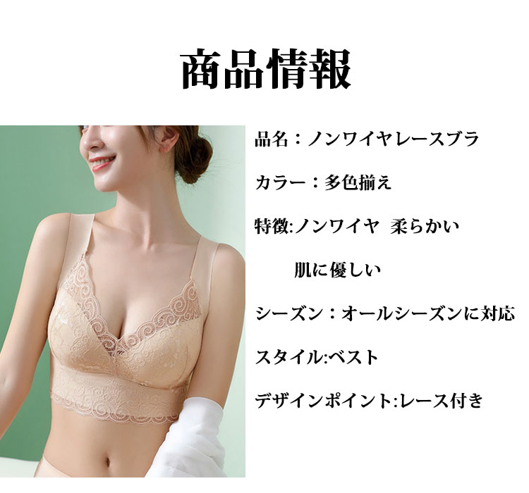 シンプル ノンワイヤー レース ブラジャー
