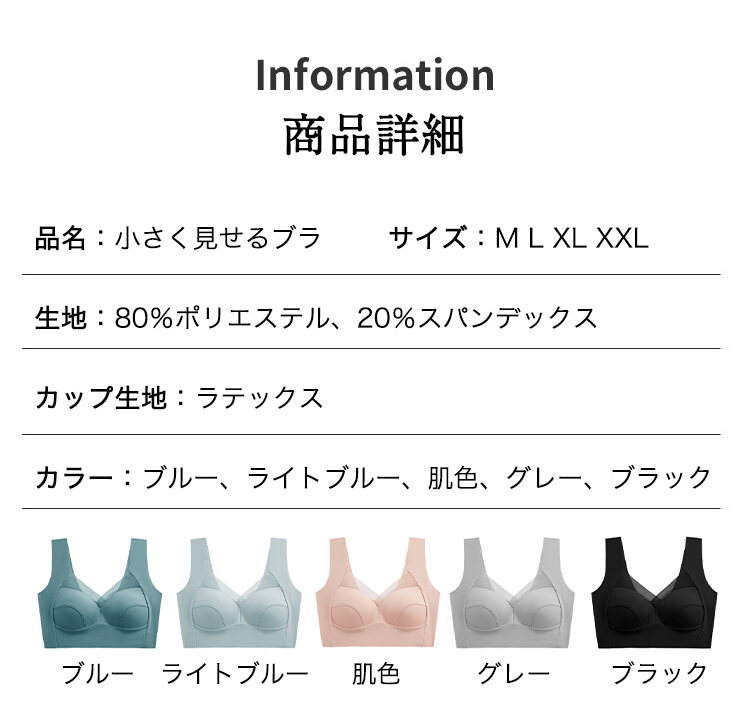 小さく見せる 無地 カジュアル シンプル ブラジャー