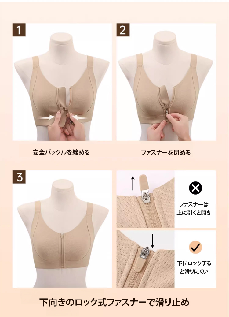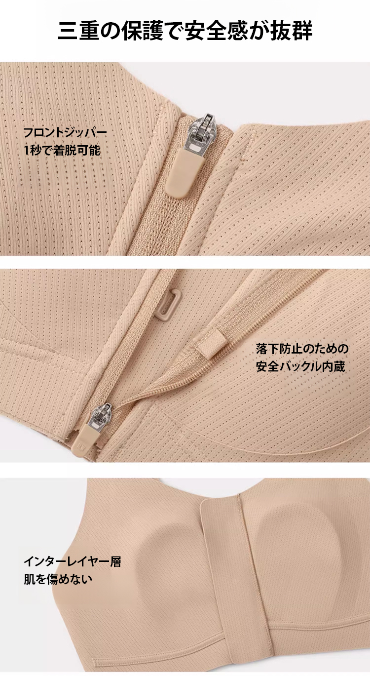 胸を小さく見せる フロントファスナ付き ブラジャー