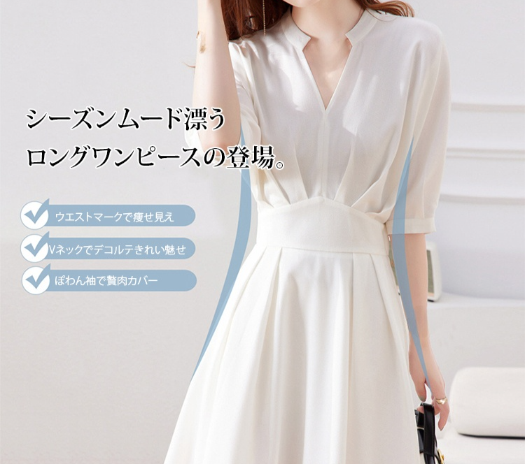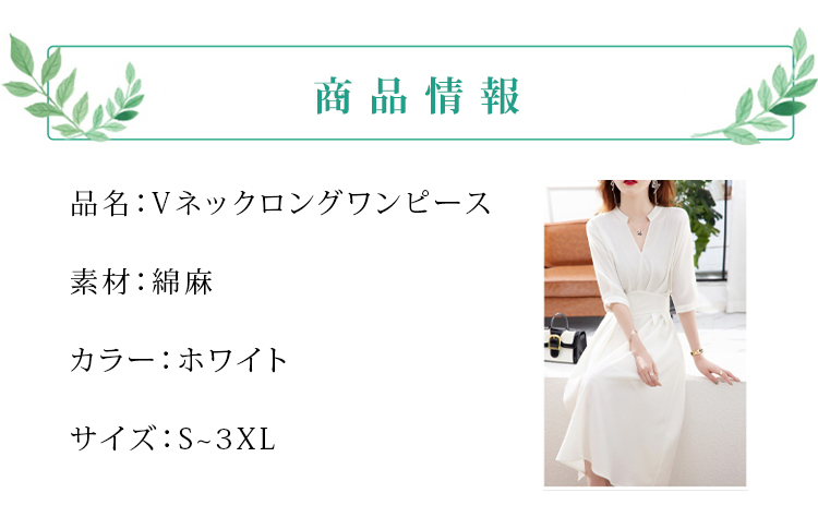 無地 Vネック カジュアル ロング 五分袖 ワンピース