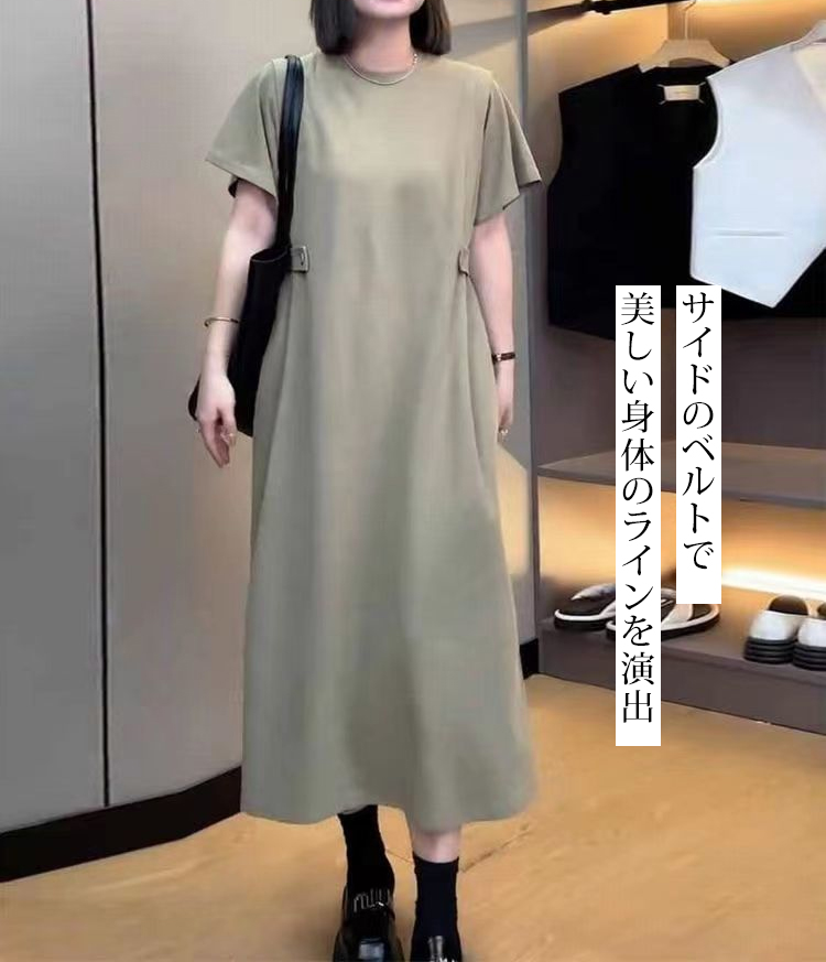 人気商品 無地 ロング丈 カジュアル ワンピース