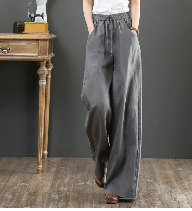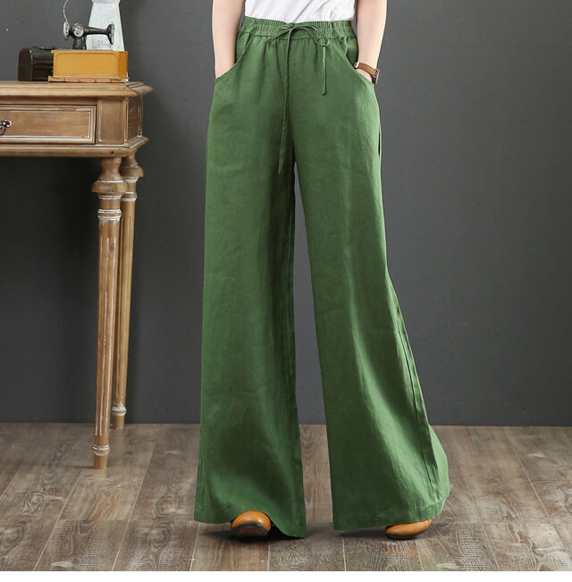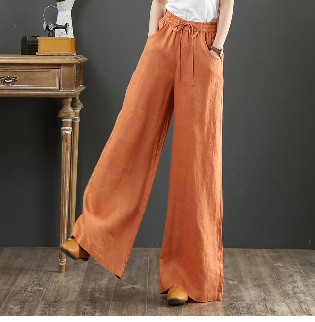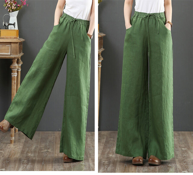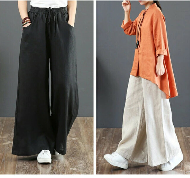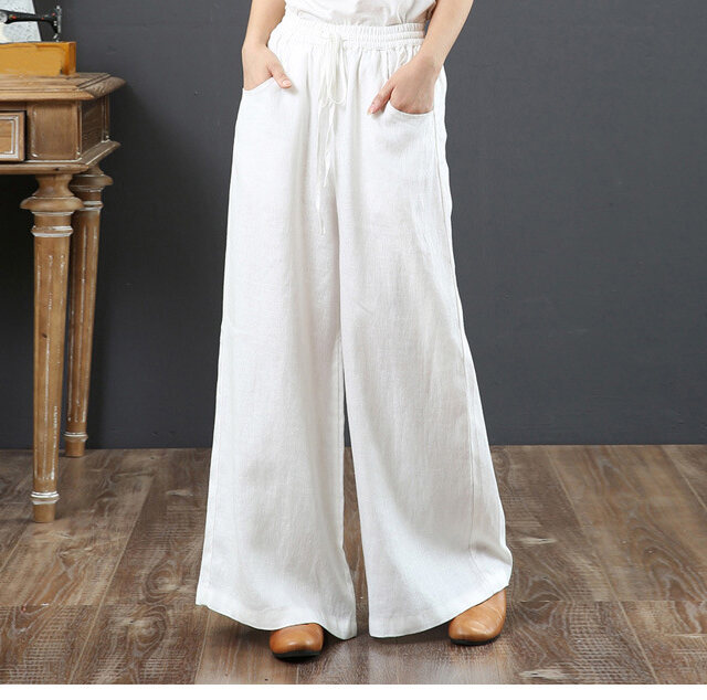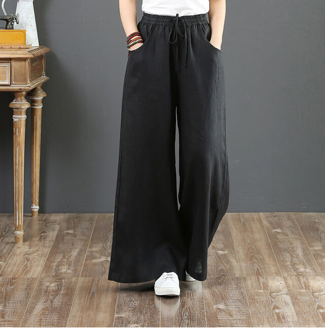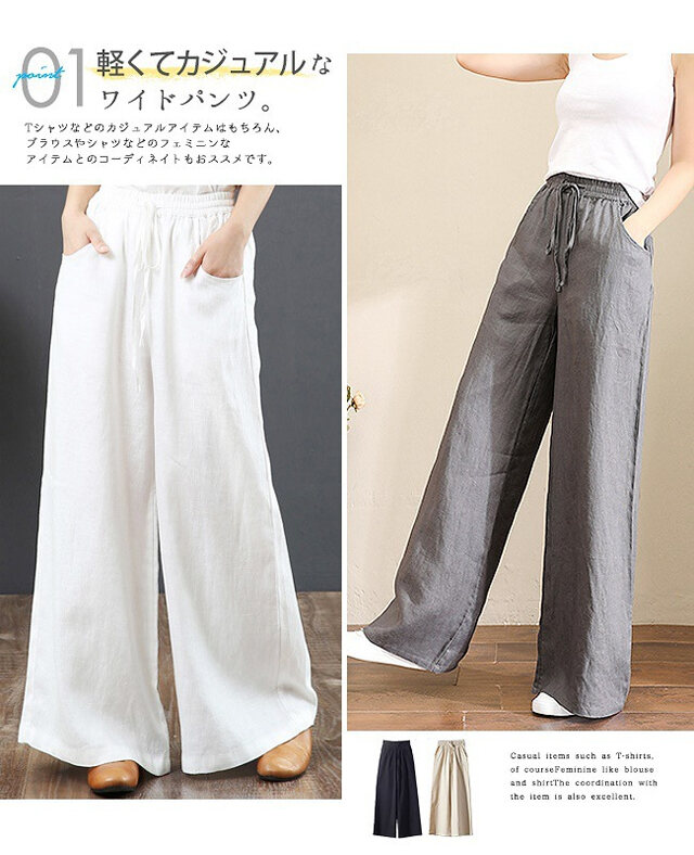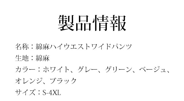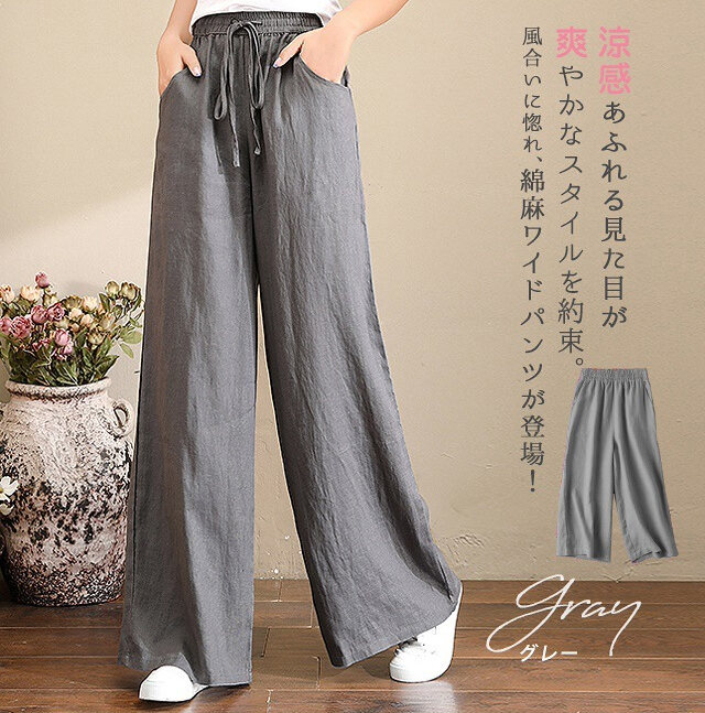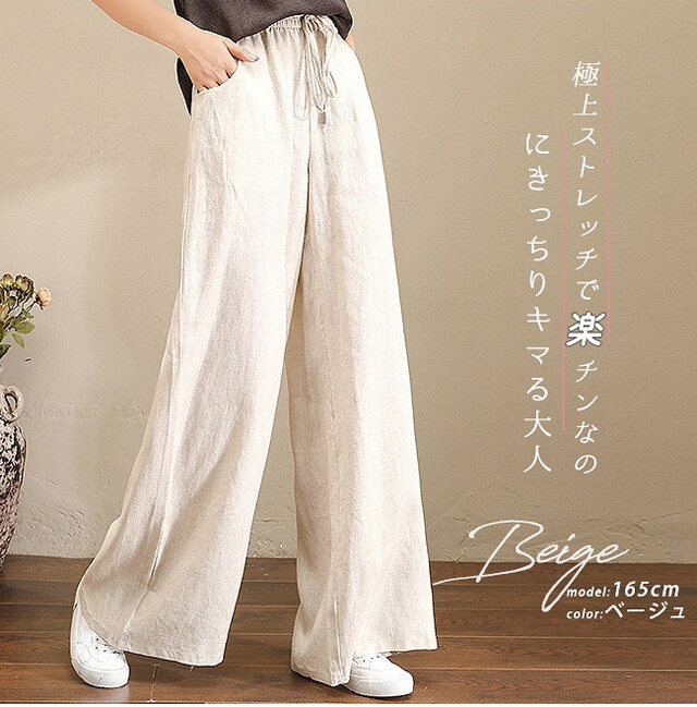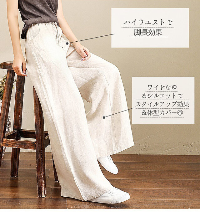 話題沸騰中 綿麻 ハイウエスト ワイドパンツ