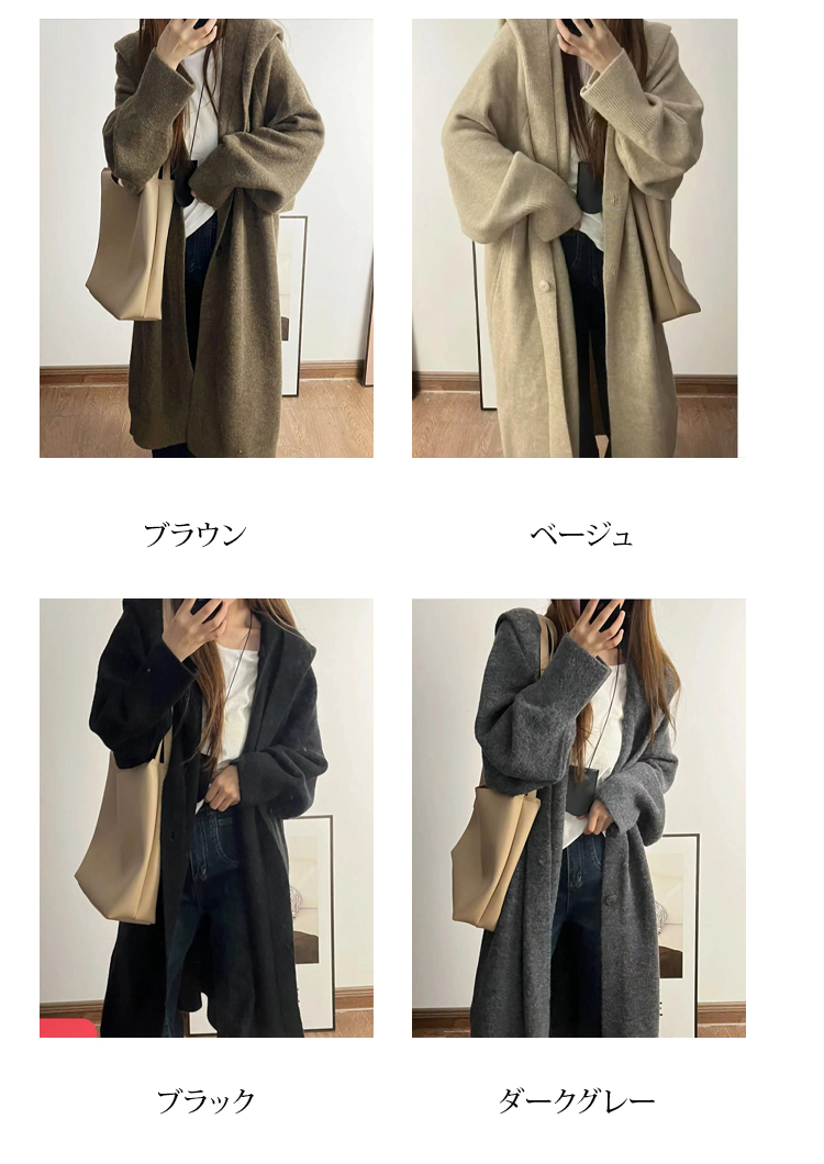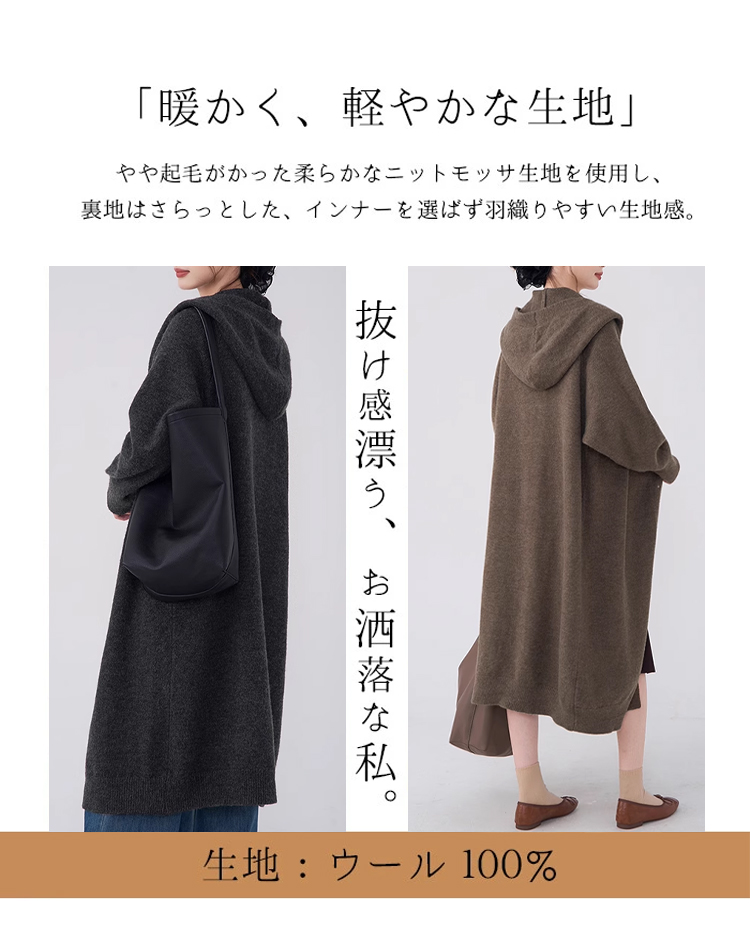 圧迫感なし ルーズ 無地 ロング丈 カーディガン