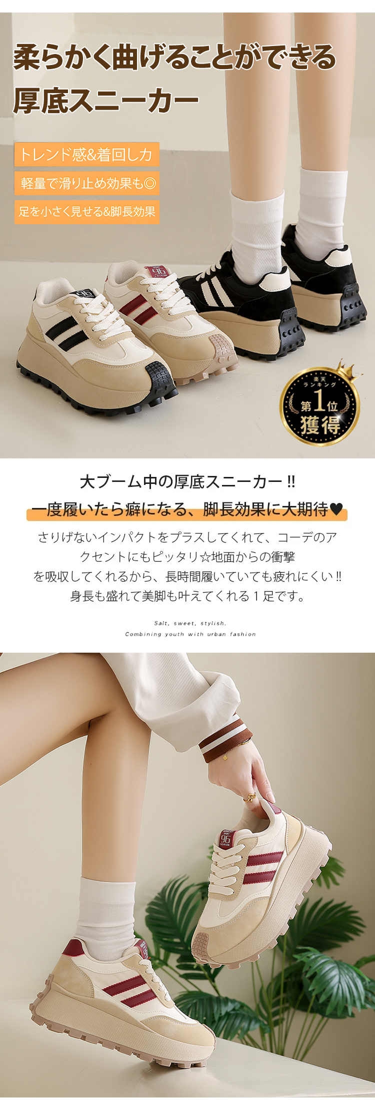人気爆発中 スリム見え レディース 厚底 スニーカー