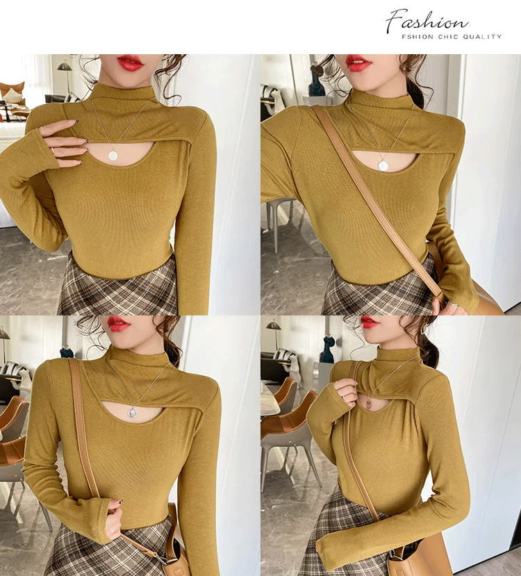 セクシー ハーフハイネック 無地 カジュアル シンプル Tシャツ