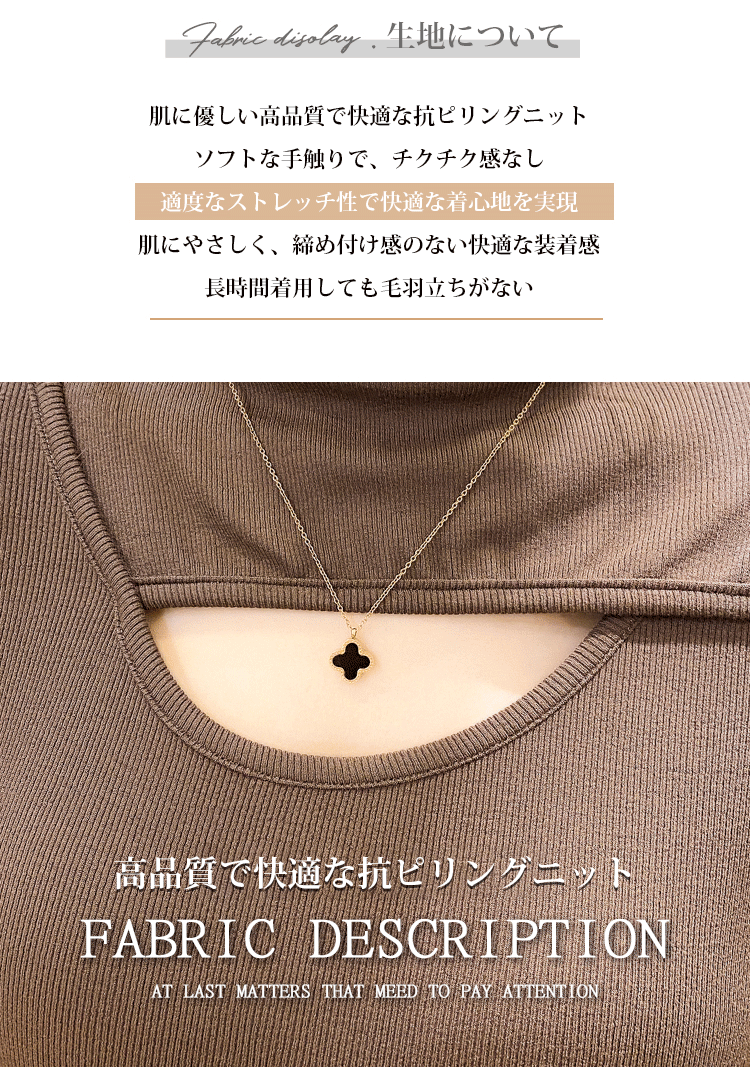 長袖 折り返す 無地 ジッパー付き ロング ニットワンピース