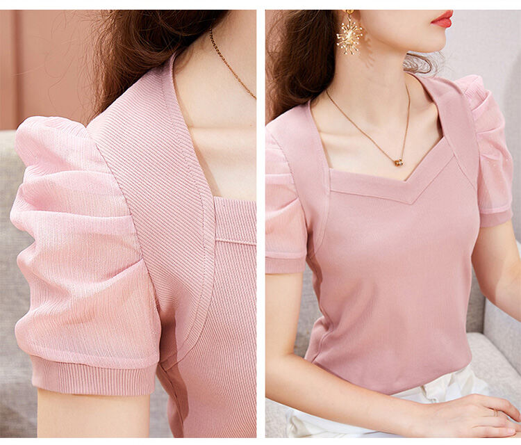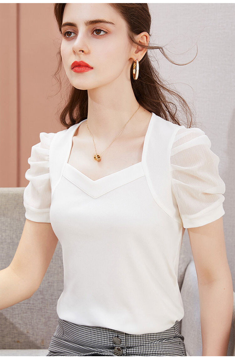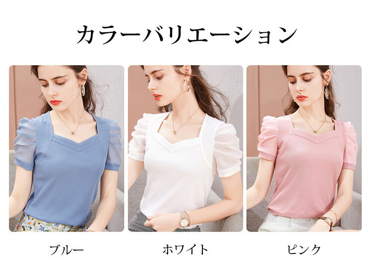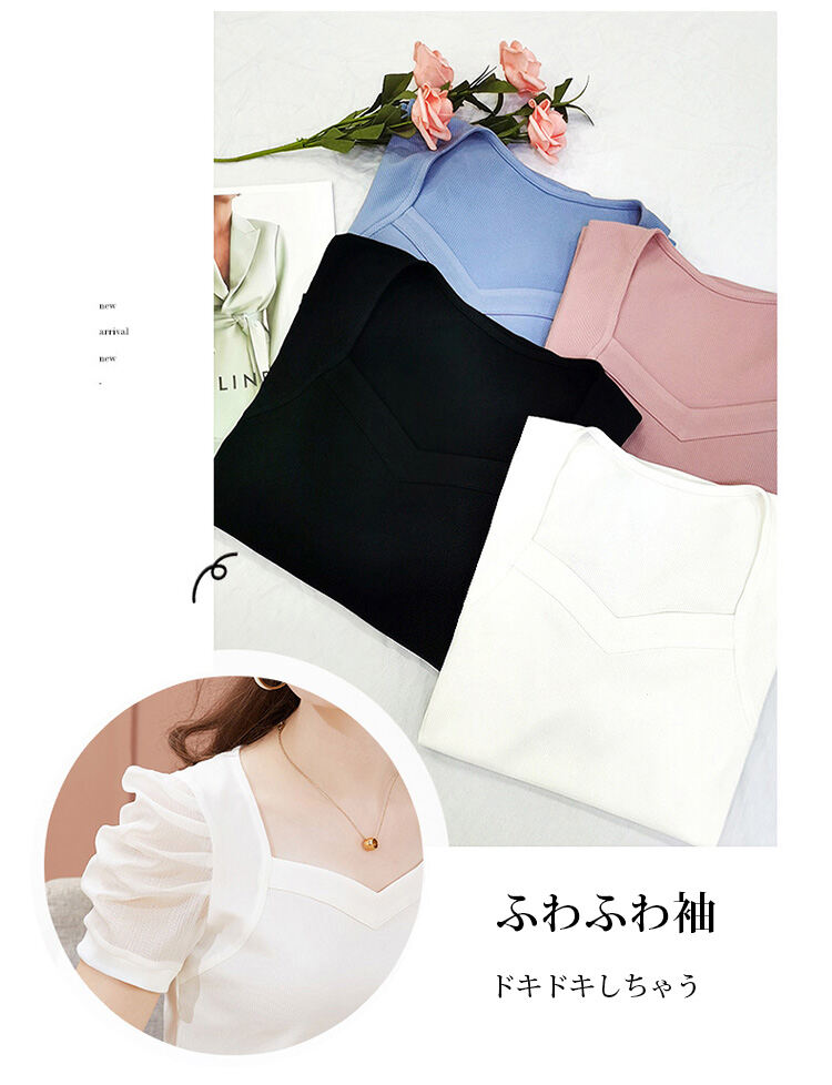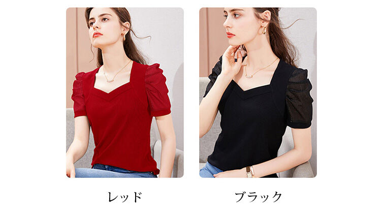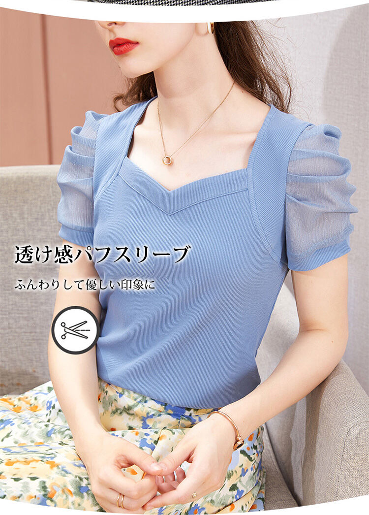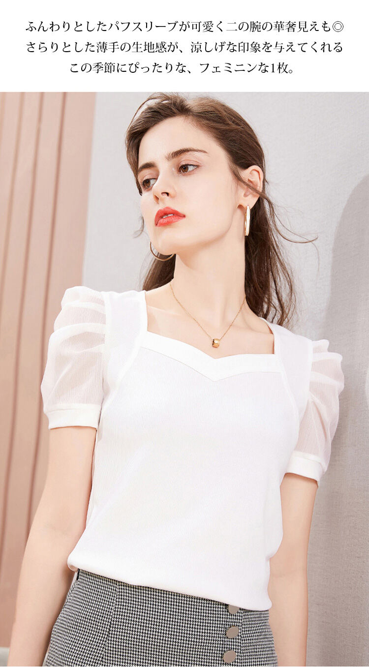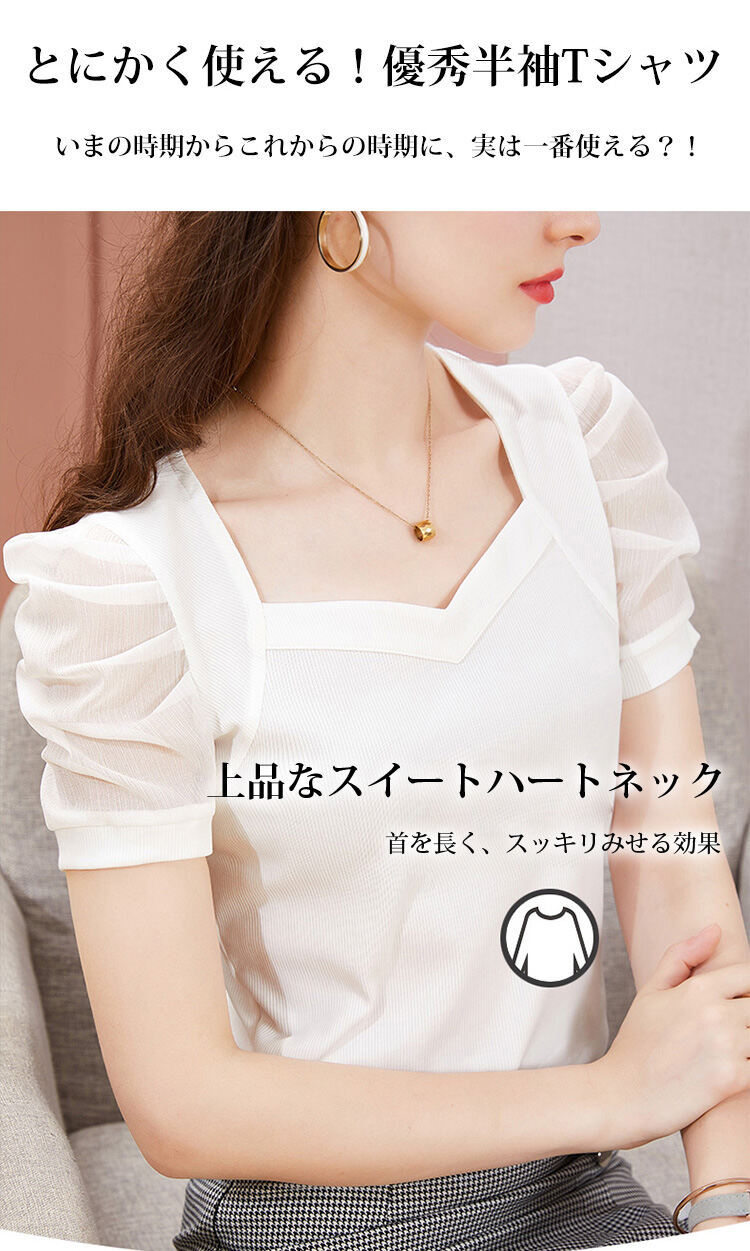 レディース 無地 パフスリーブ Tシャツ