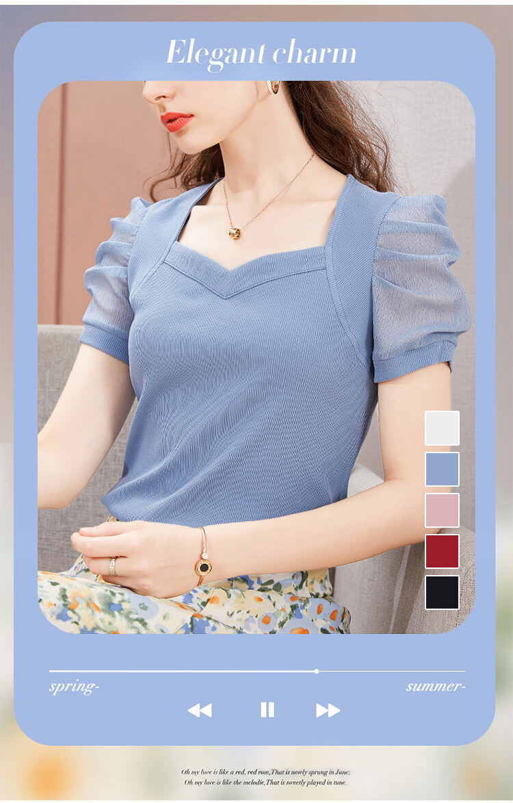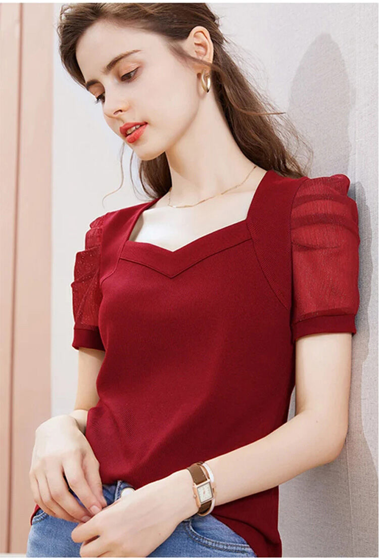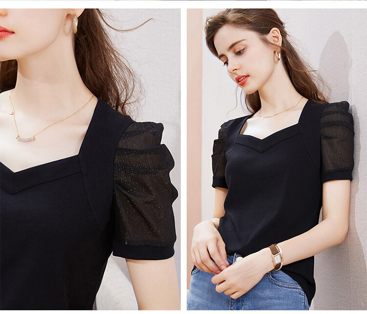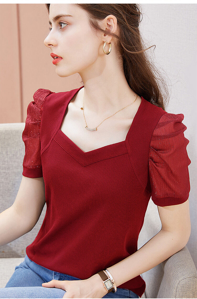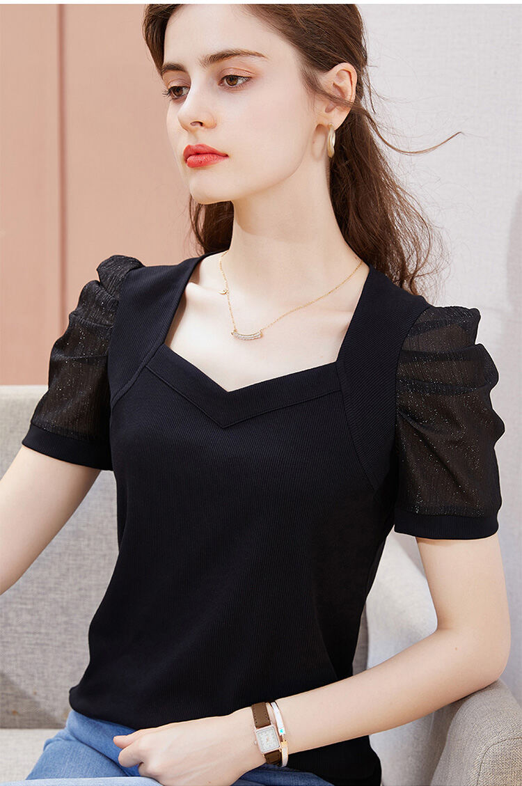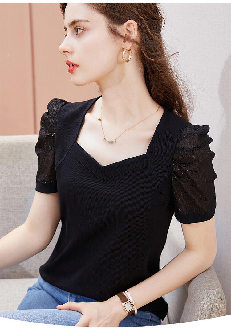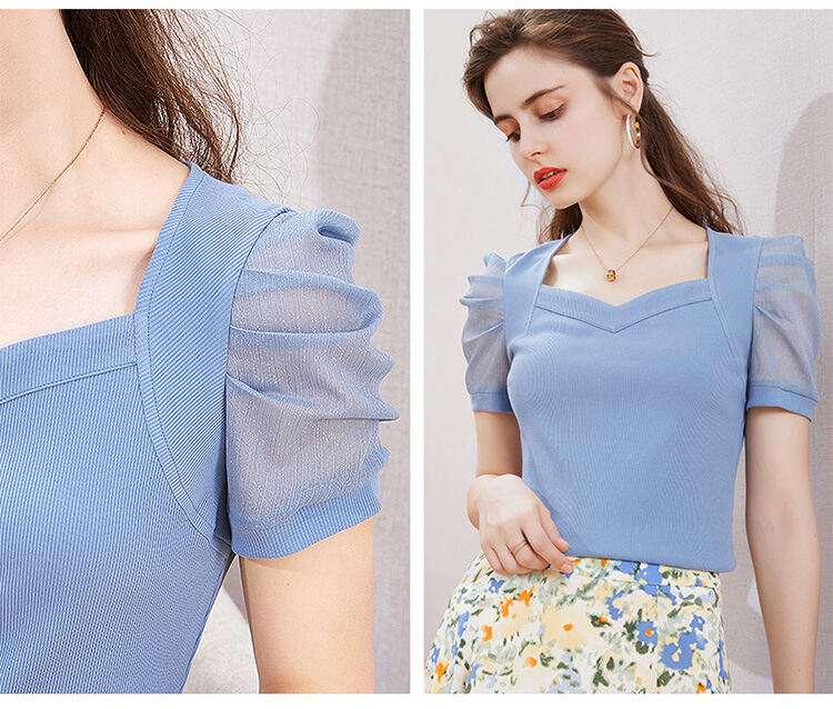 レディース 無地 パフスリーブ Tシャツ