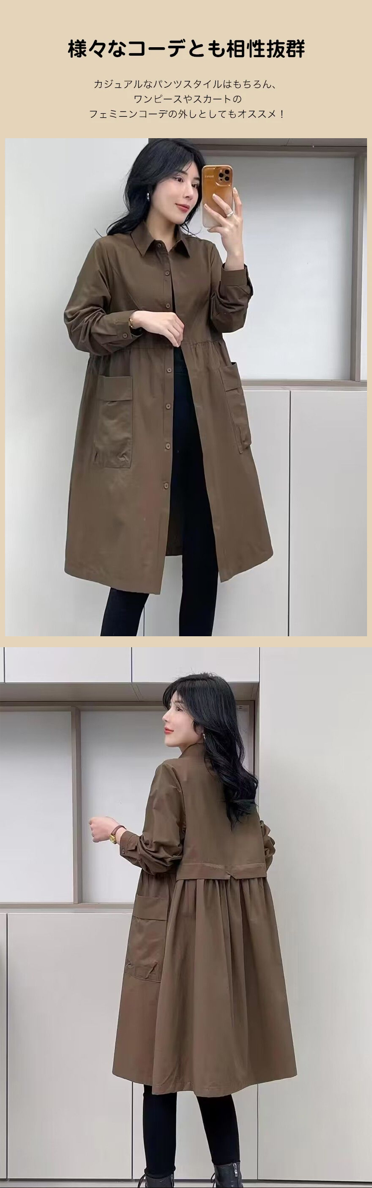 簡単おしゃれ 着痩せ 無地 カジュアル シンプル 長袖 トレンチコート