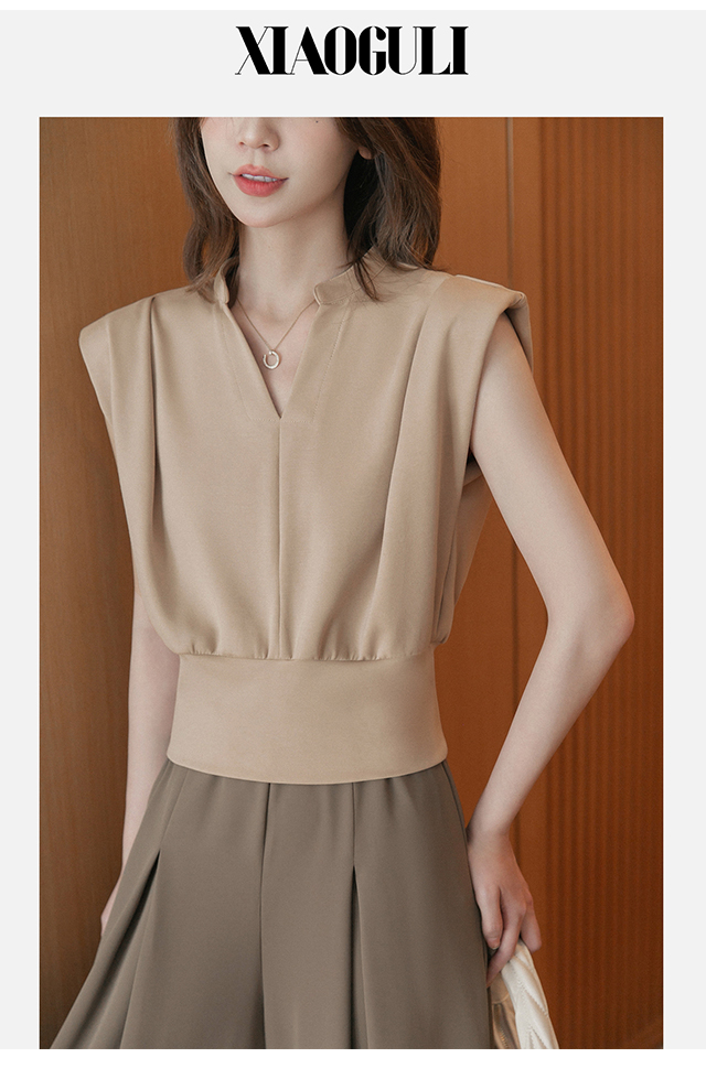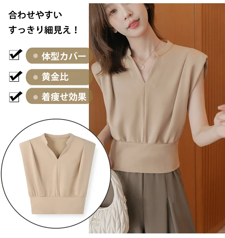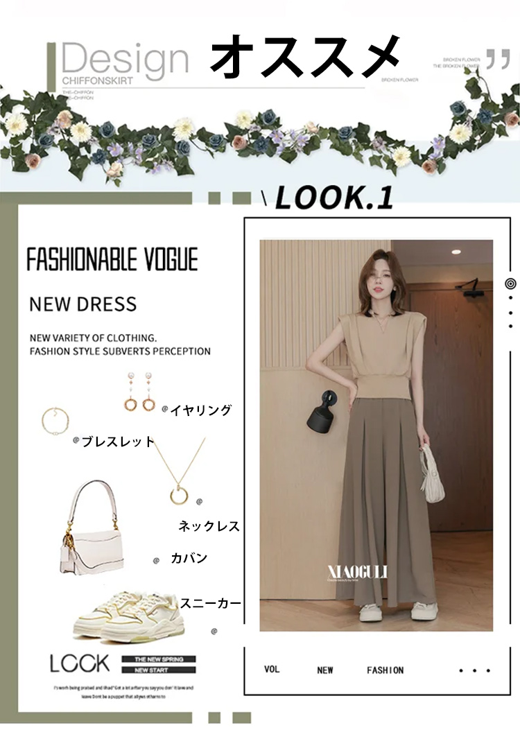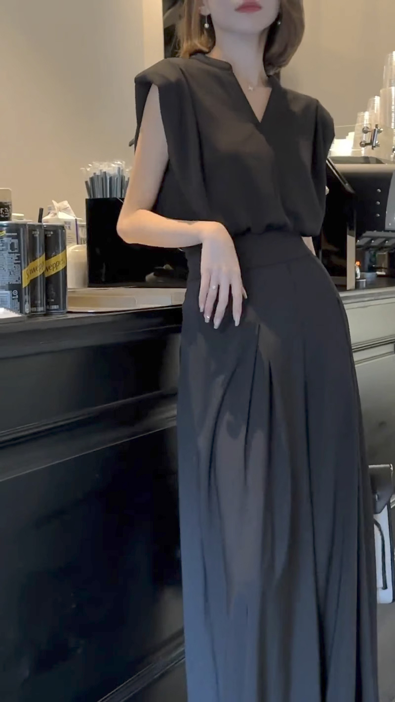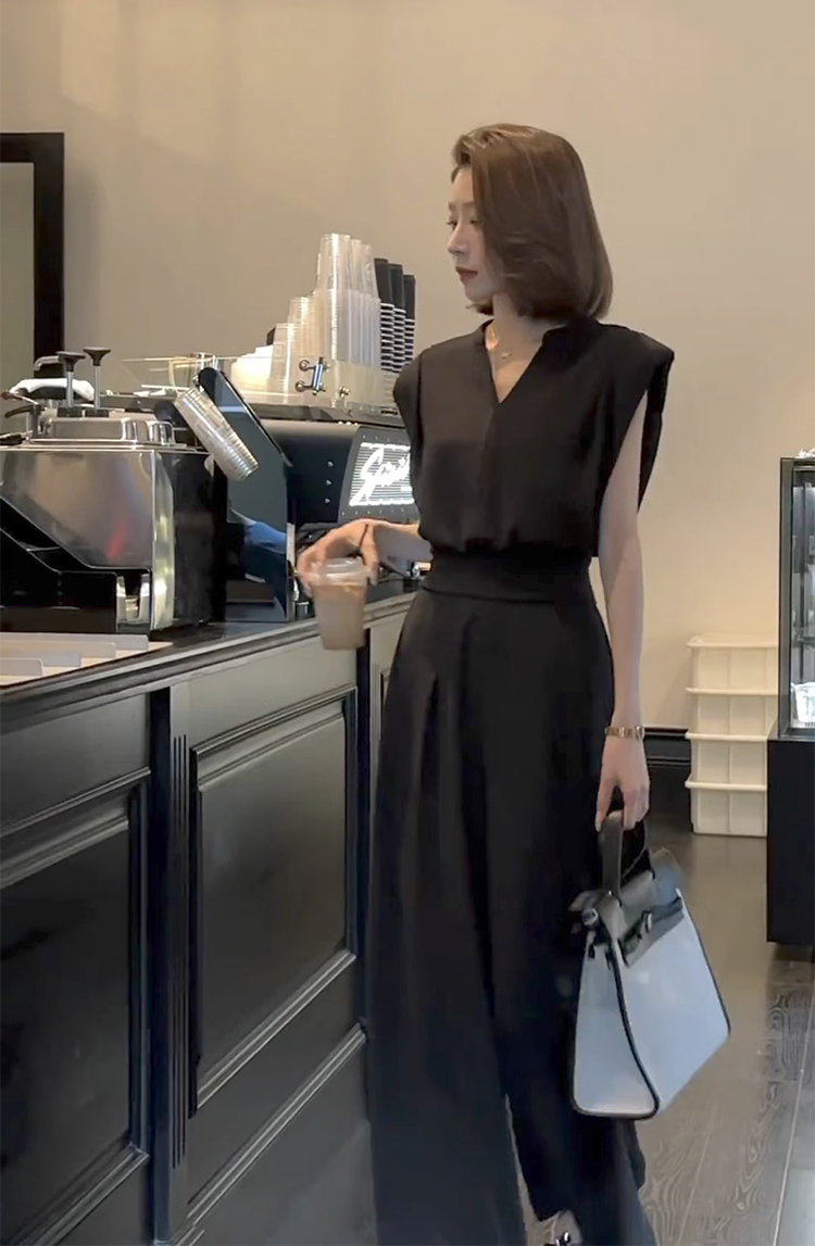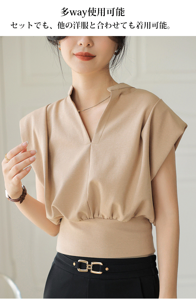 着痩せ Vネック カジュアル トップス+ワイドパンツ 上下セット