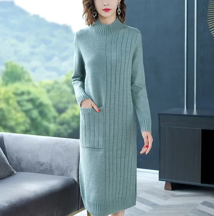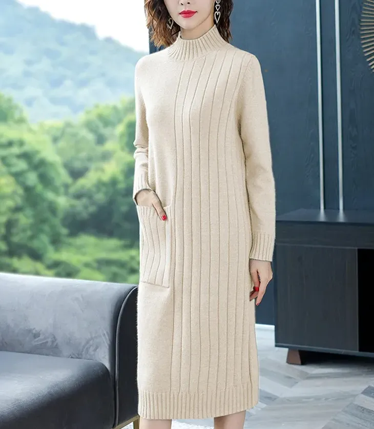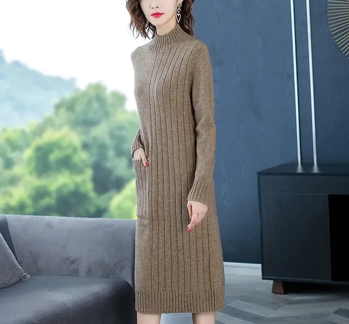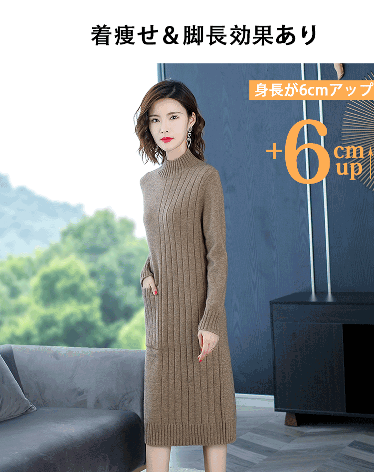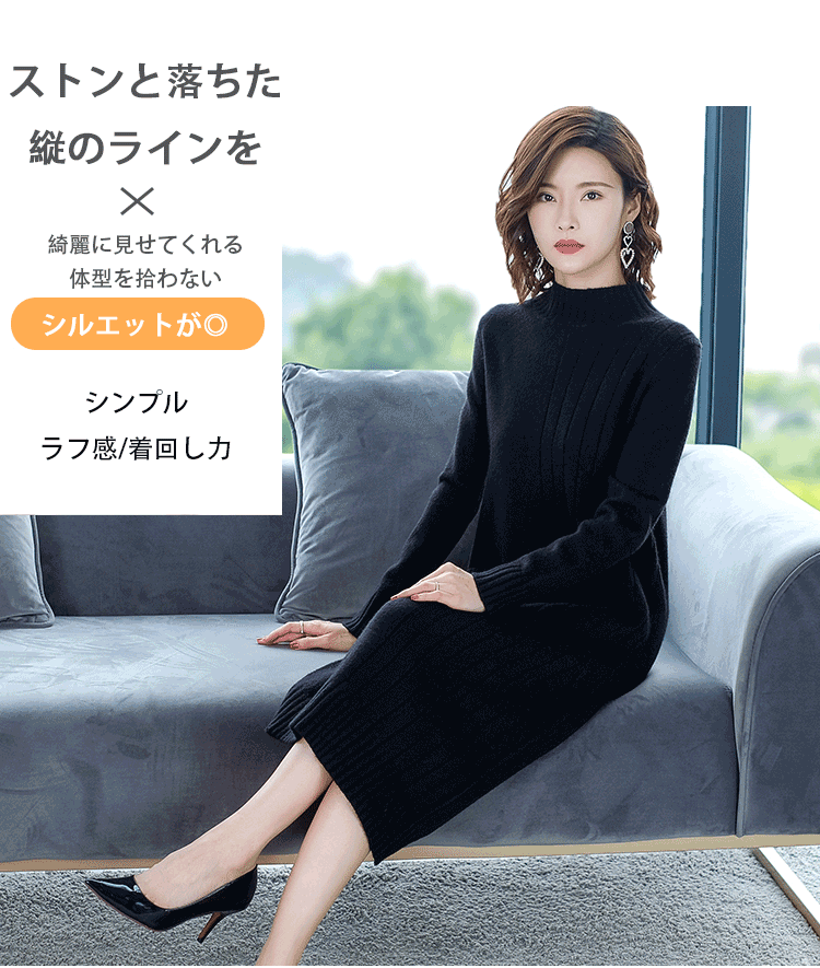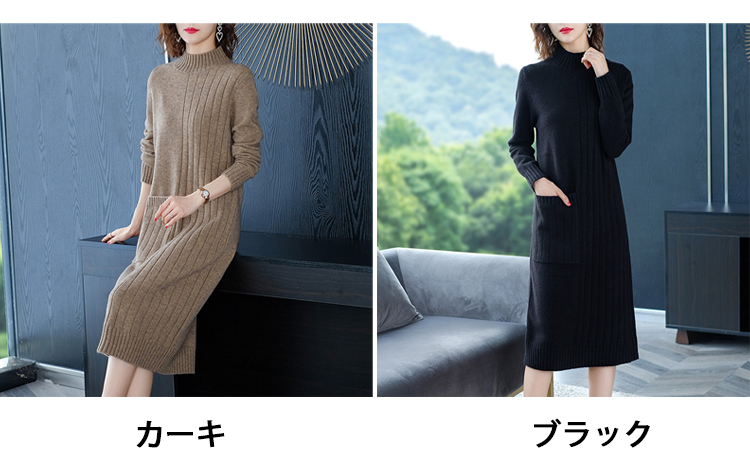 定番アイテム ハイネック ニットワンピース