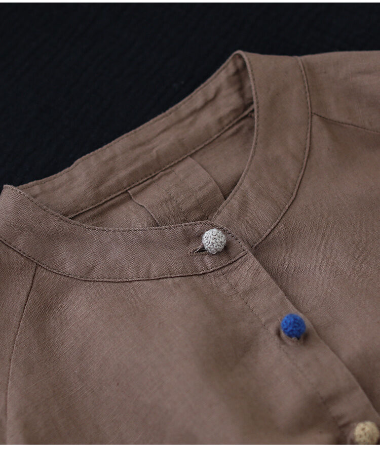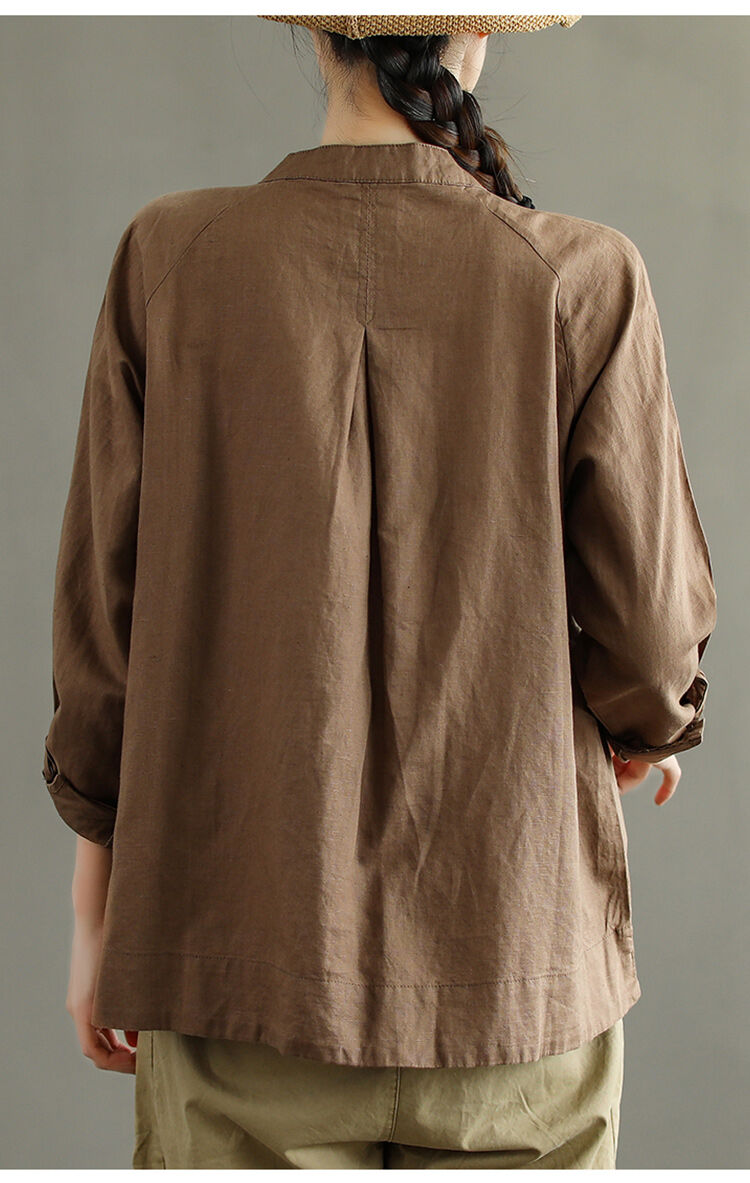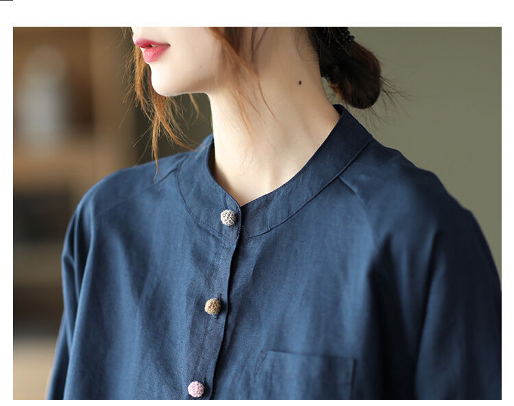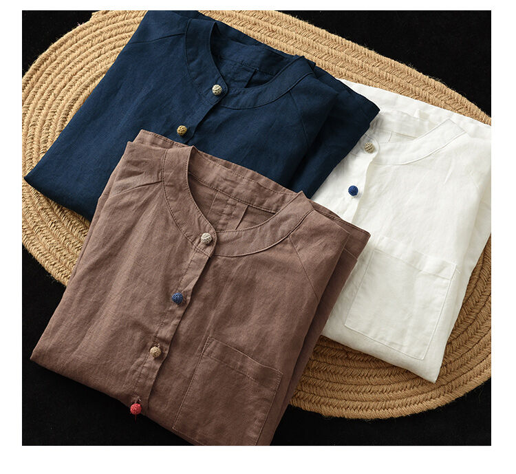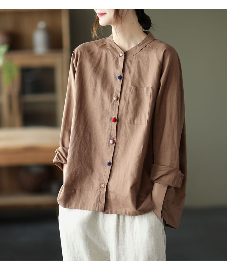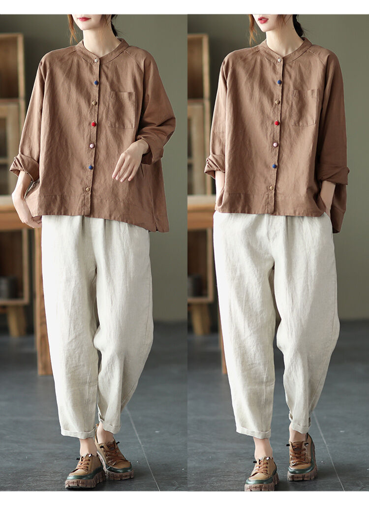 着心地良い 無地 綿麻 スウィート シャツ
