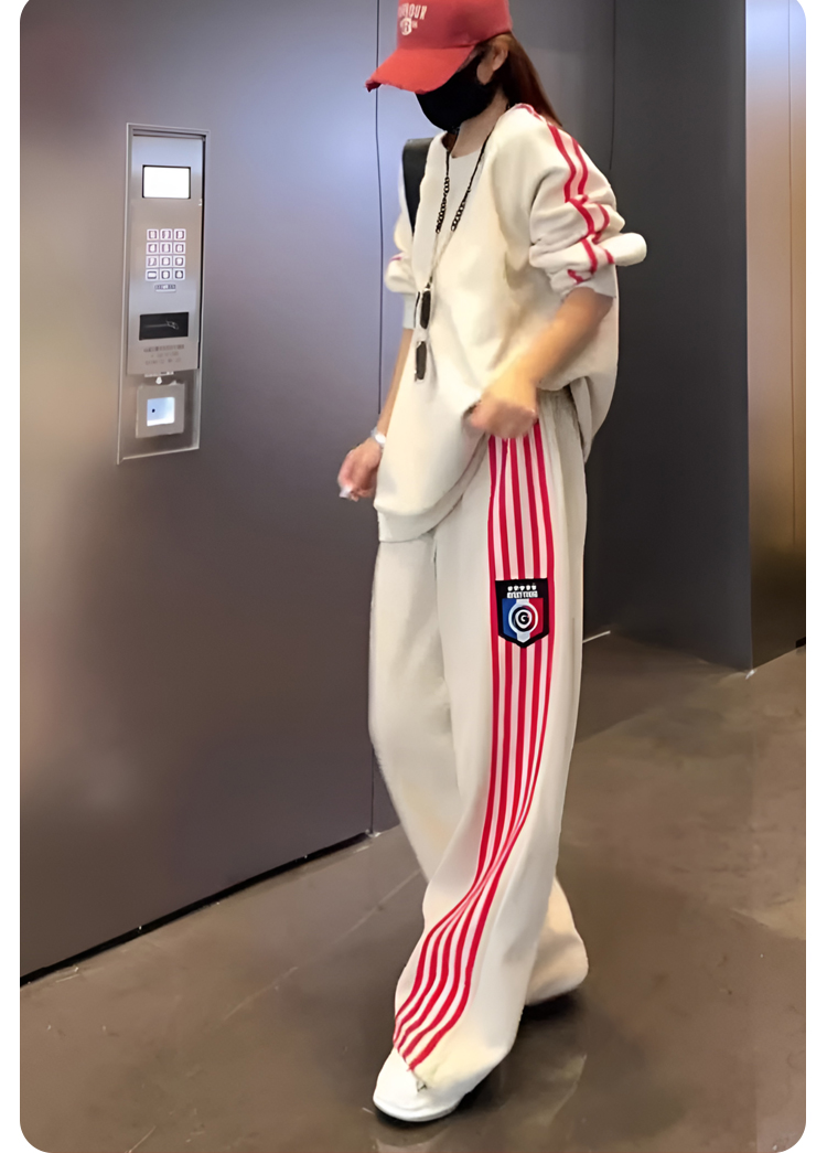 大活躍 長袖 配色 スウェット+ワイドパンツ セットアップ