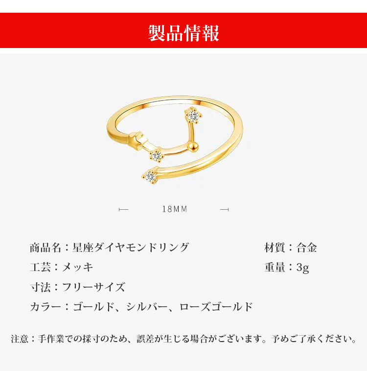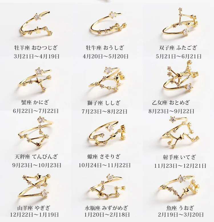 精巧な仕上がり 絶妙なデザイン 12星座 ダイヤモンド リング
