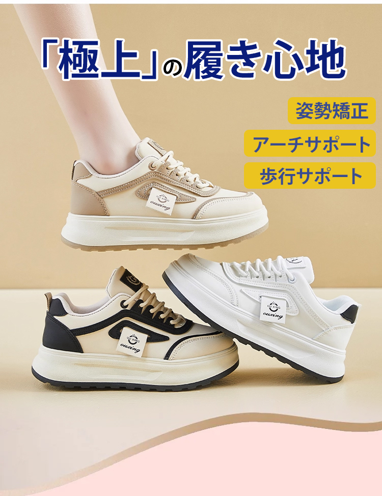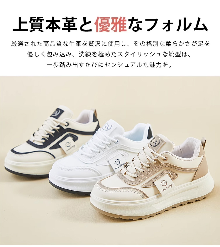 大人っぽく 厚底 幅広 レディース 配色 スニーカー