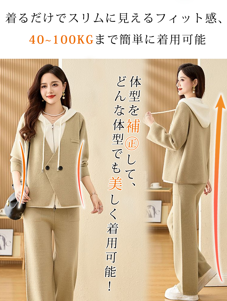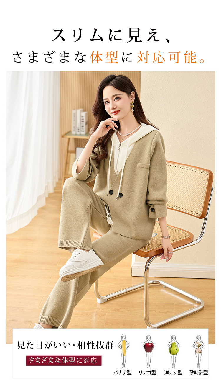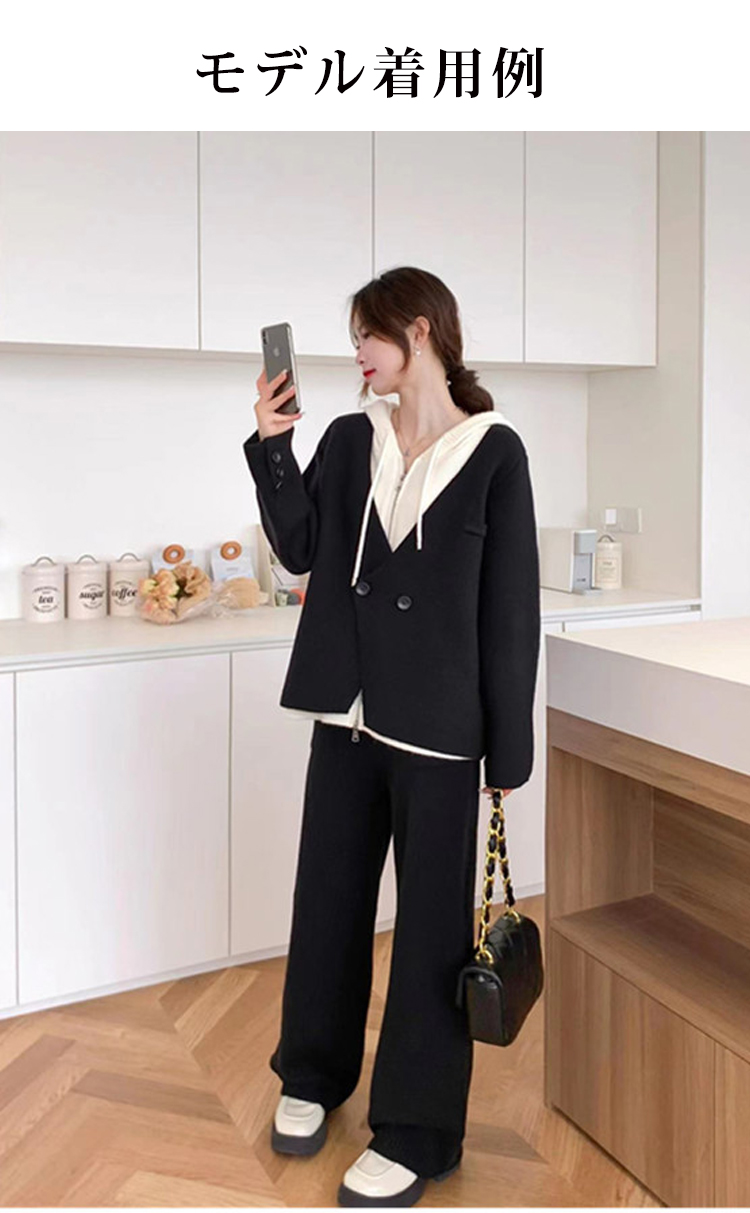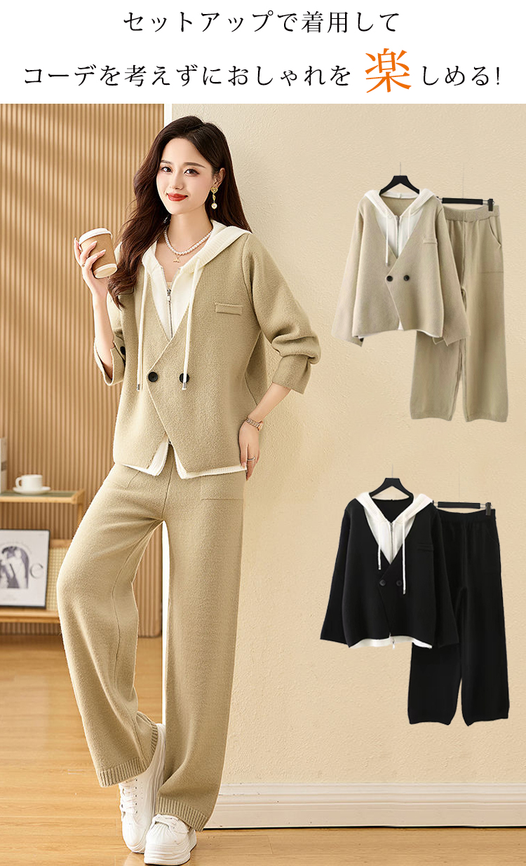 肌触り柔らか 無地 カジュアル シンプル レイヤード セットアップ