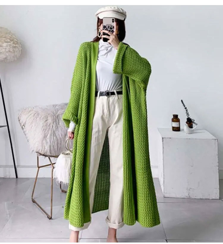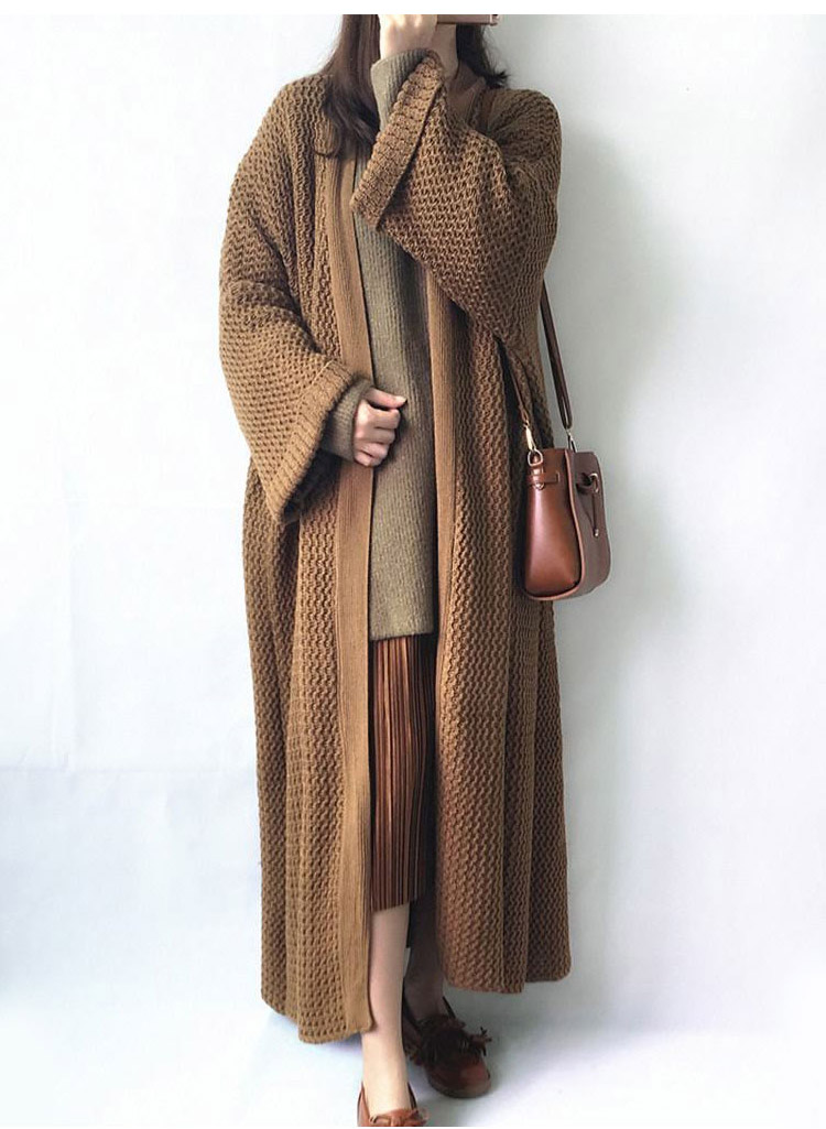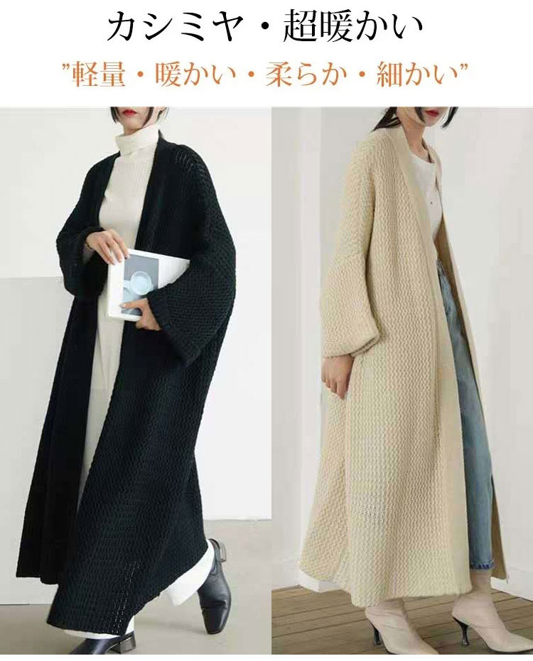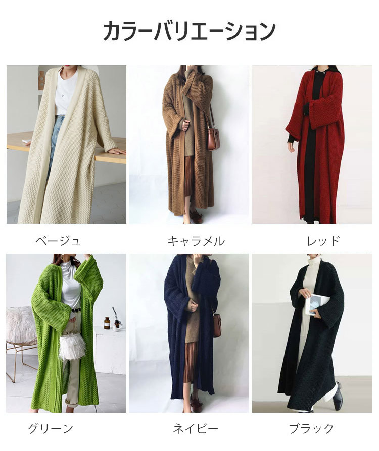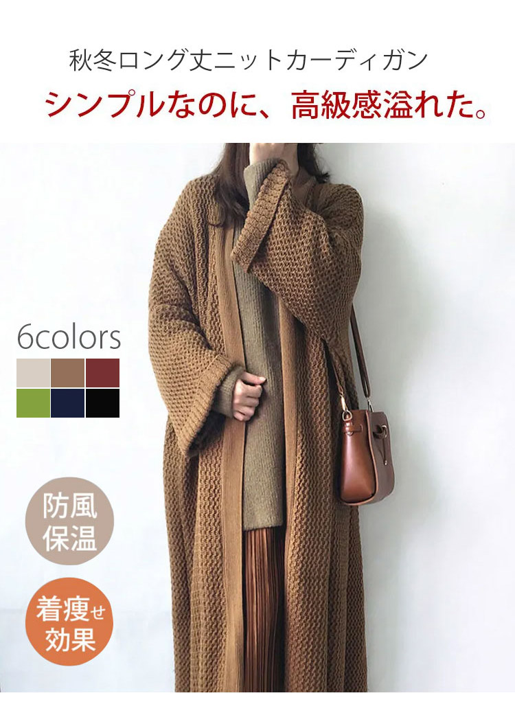 無地 カジュアル 秋冬 ロング丈 ニット カーディガン