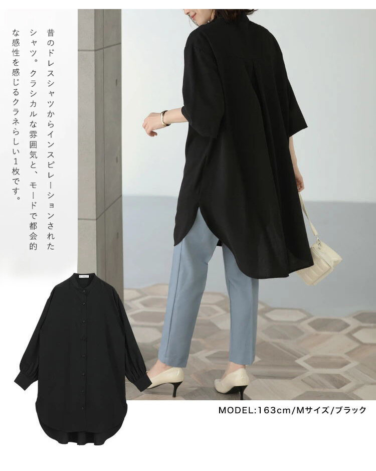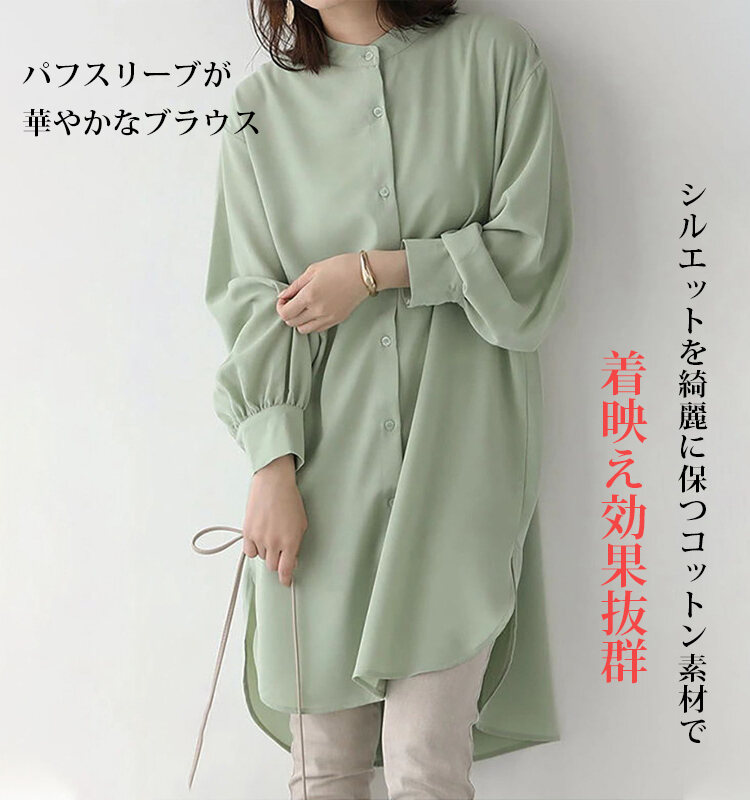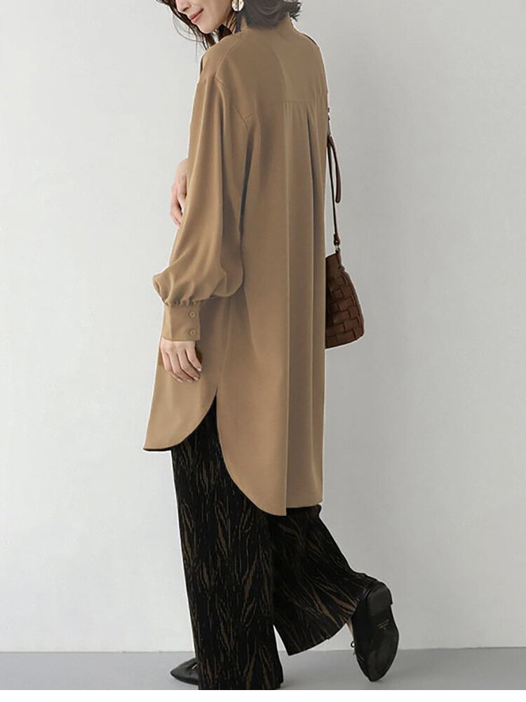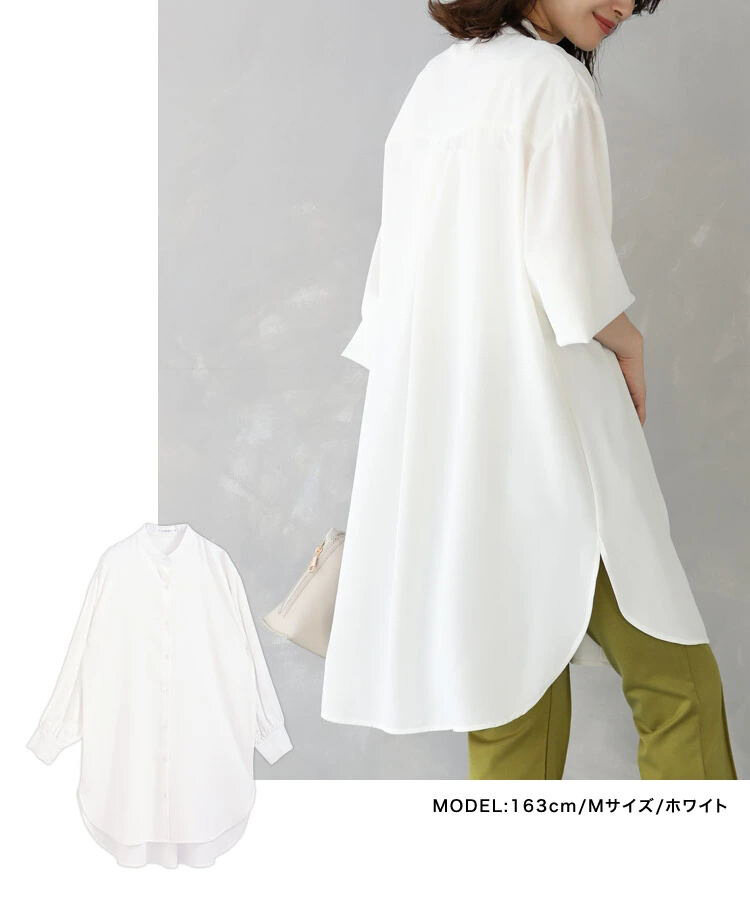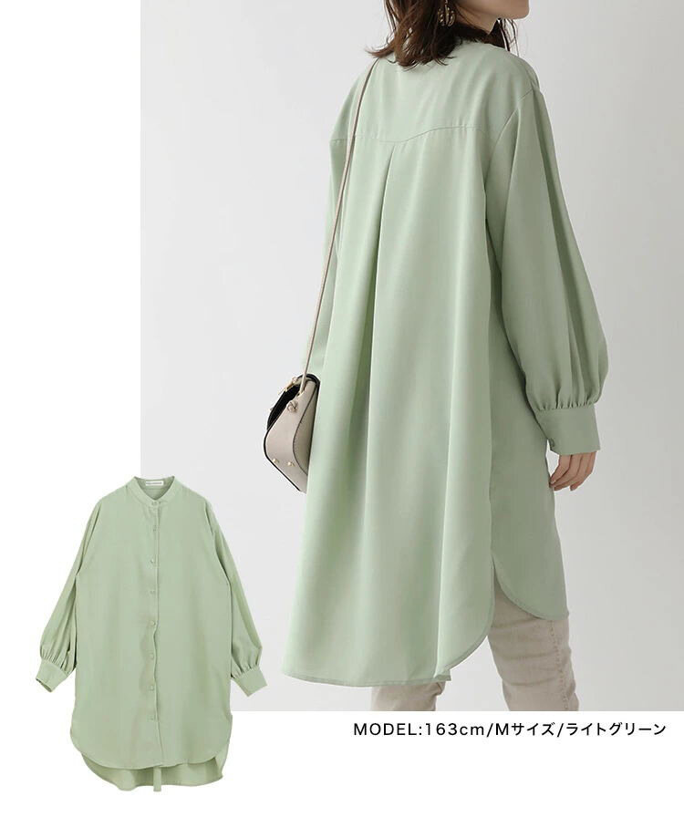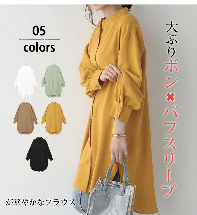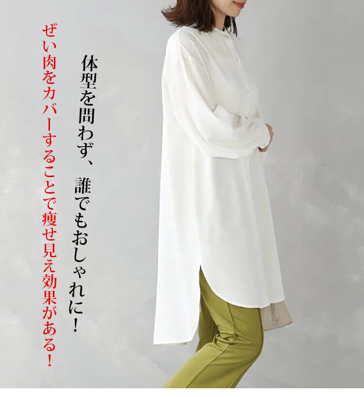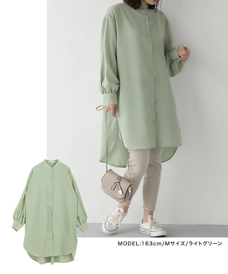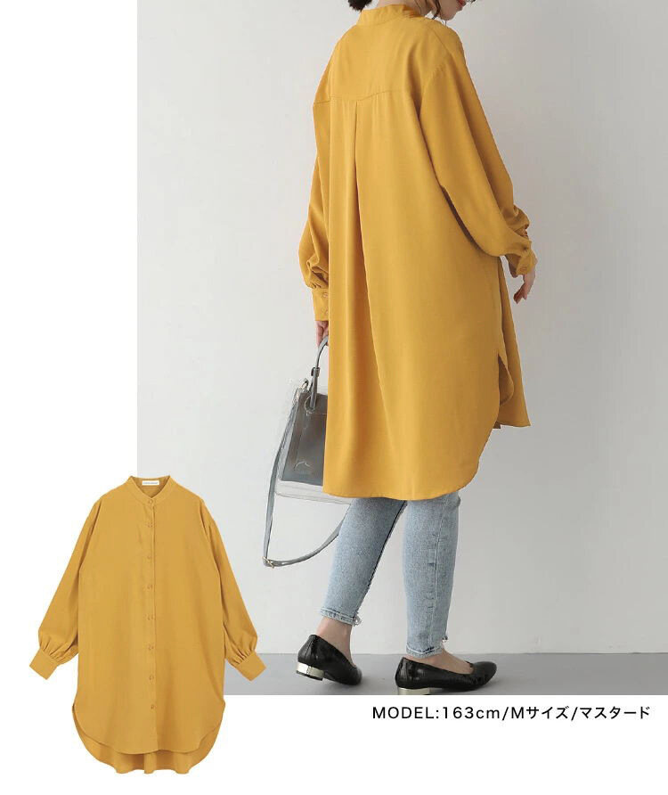 無地 カジュアル ミドル丈 レディース 長袖 シャツワンピース