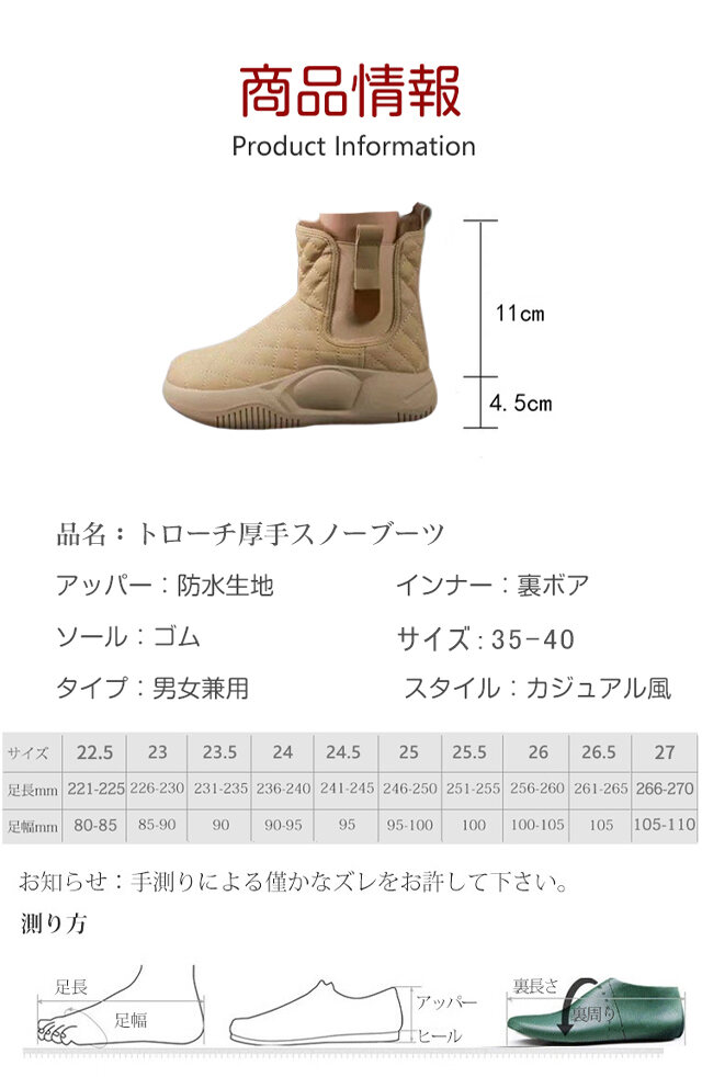 トローチ 無地 厚手 スノーブーツ