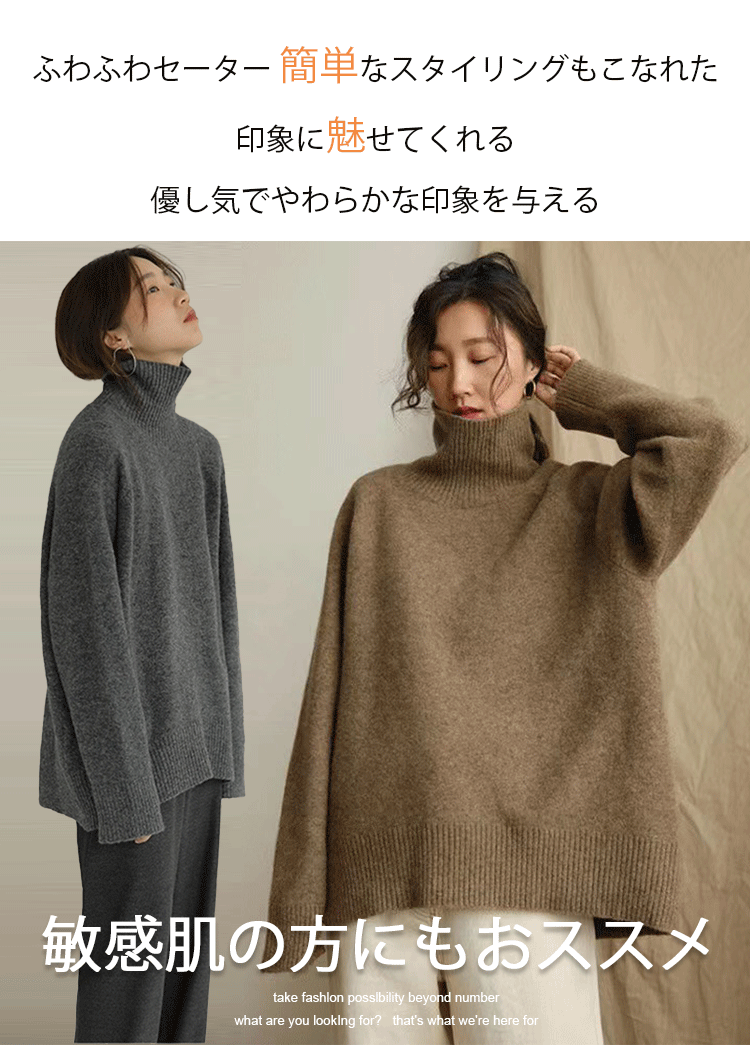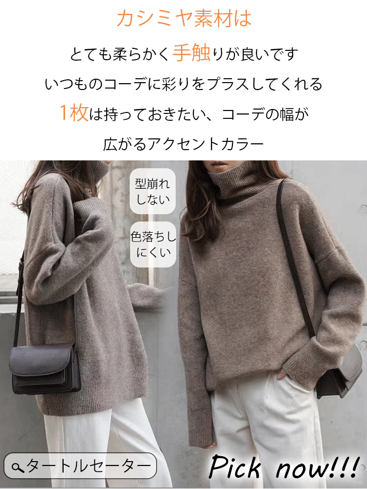レディース タートルネック カシミヤ セーター
