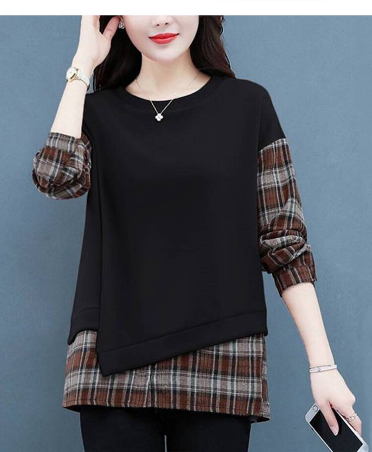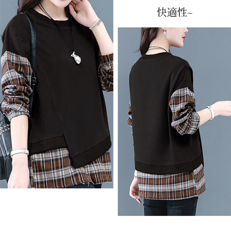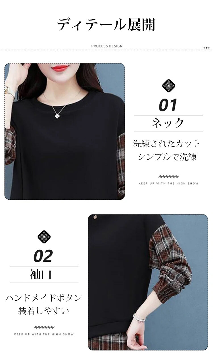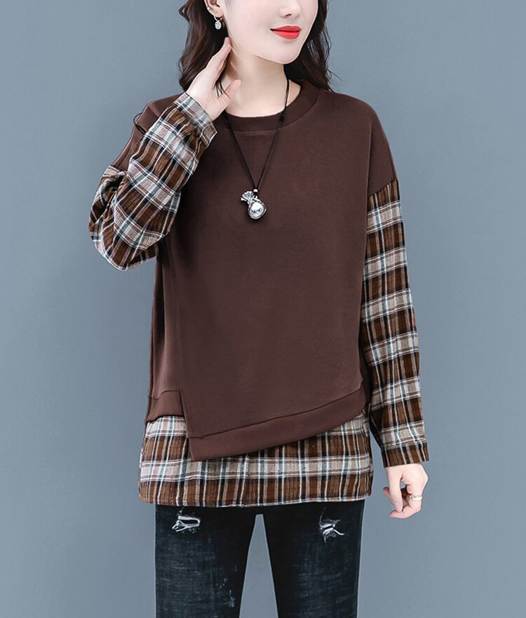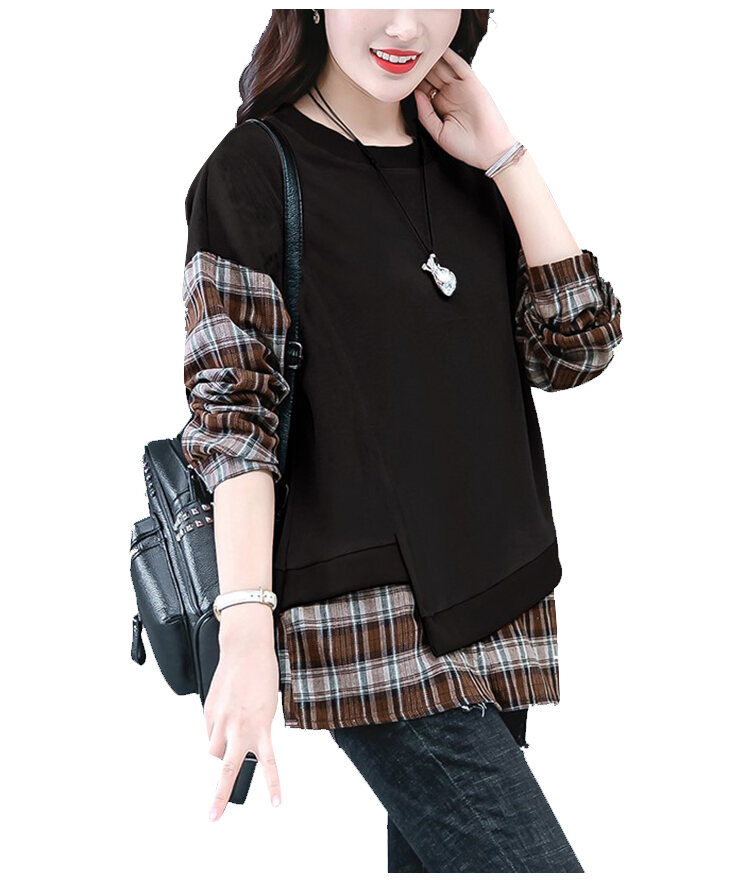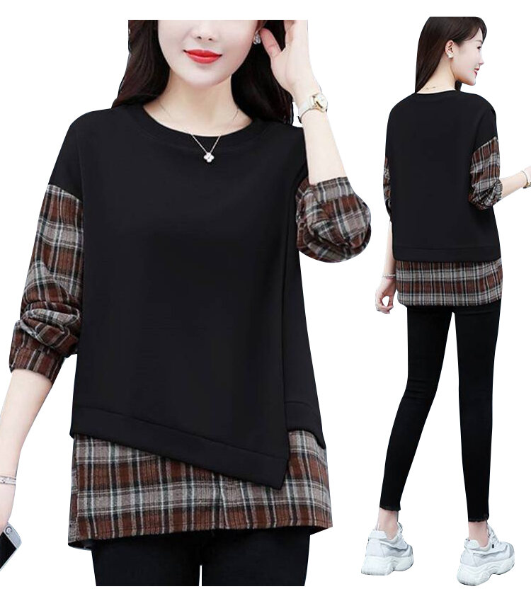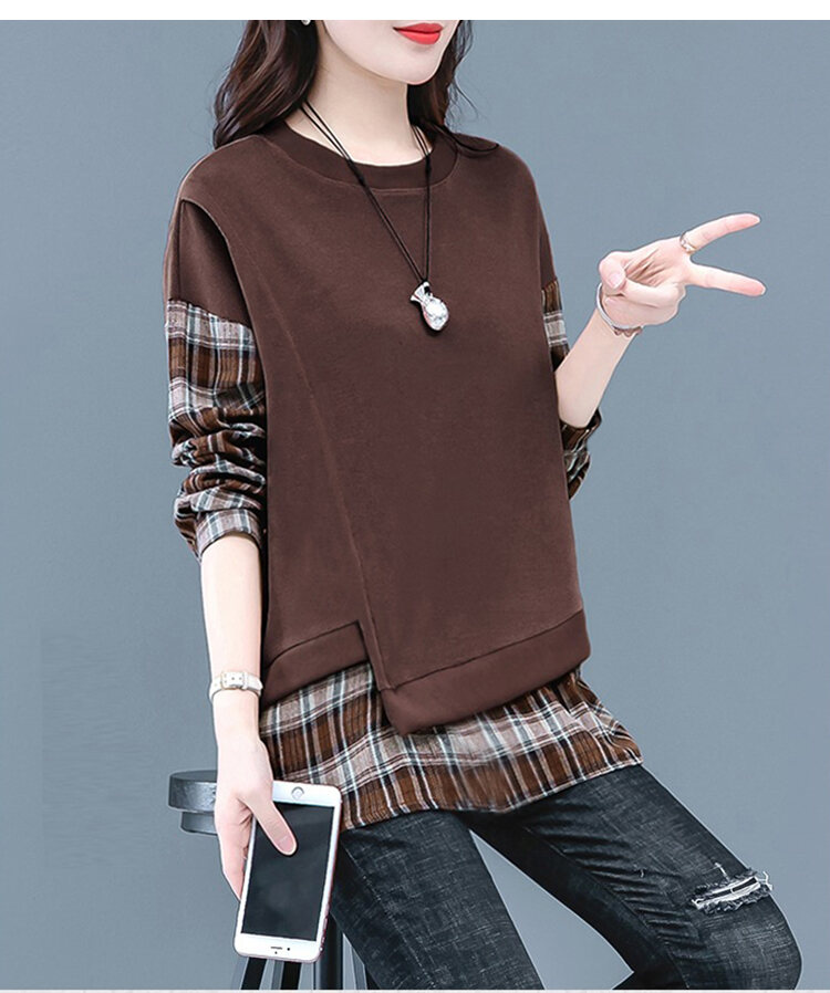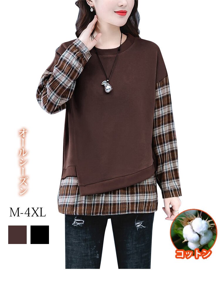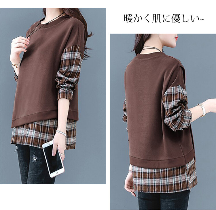 カジュアル スウェット チェック柄 ラウンドネック パーカー