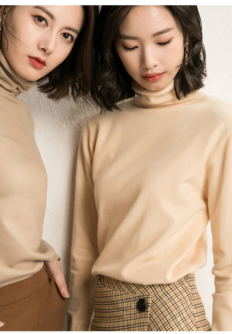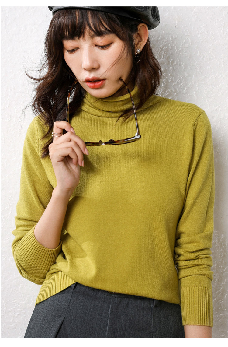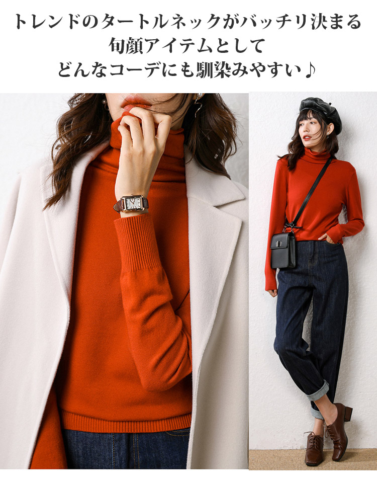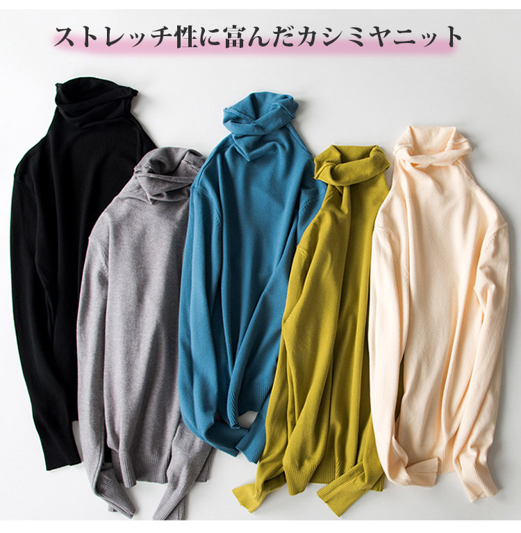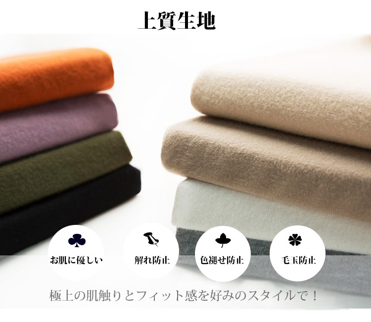 無地 長袖 ふわふわ ハイネック ニット
