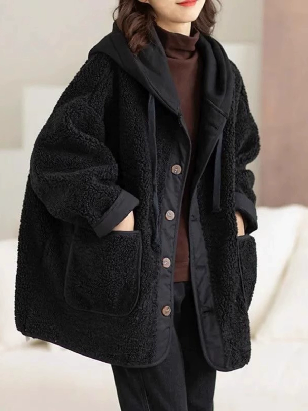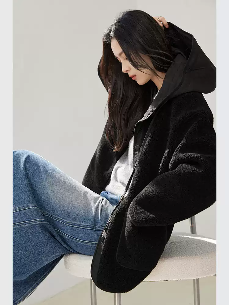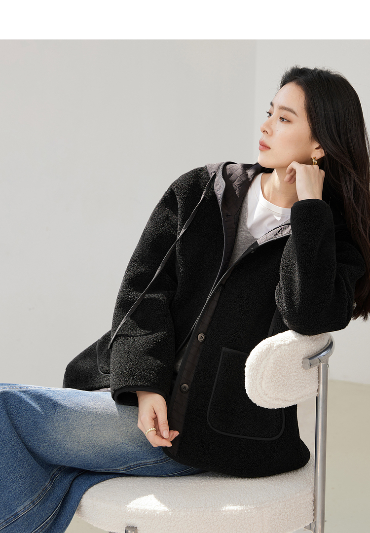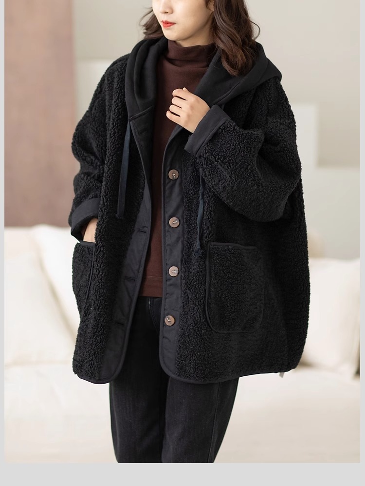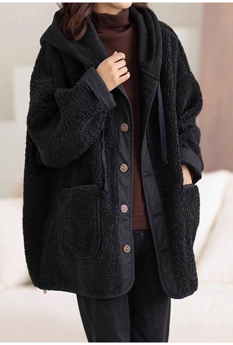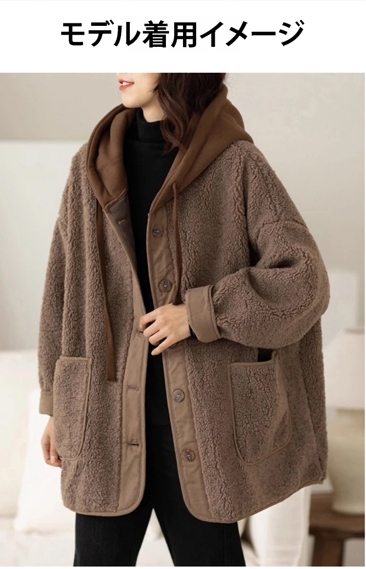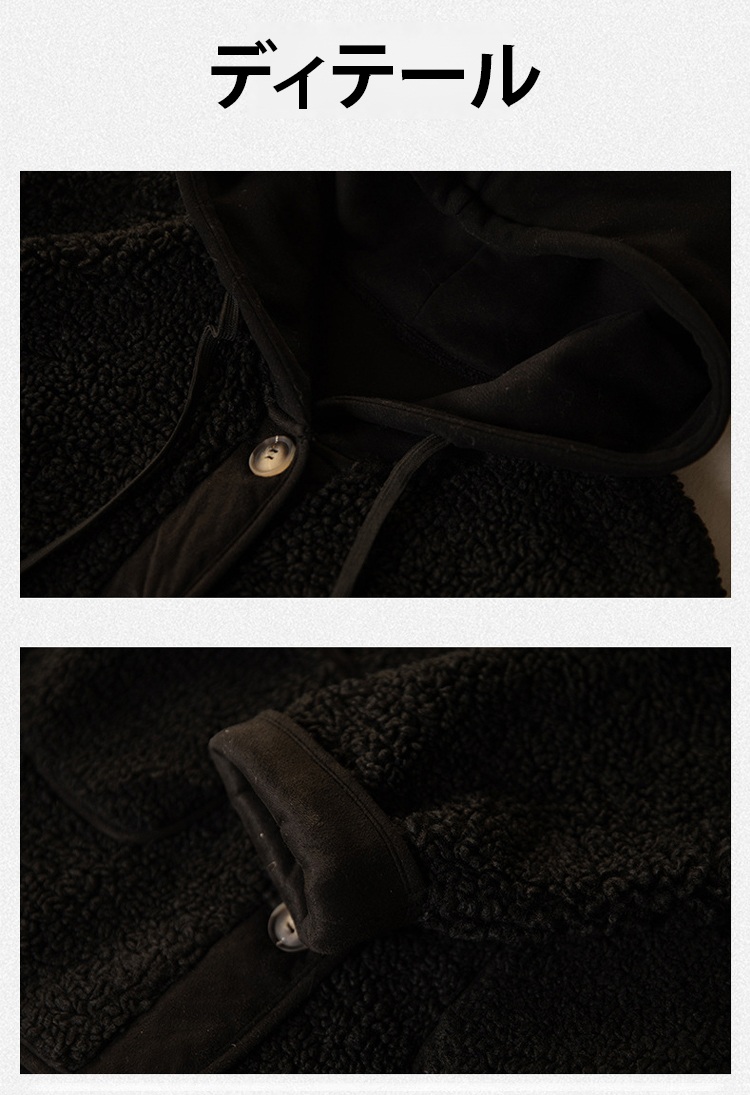 フード付き 無地 ボタン付き 長袖 ジャケット