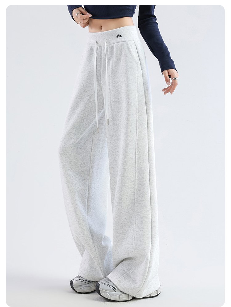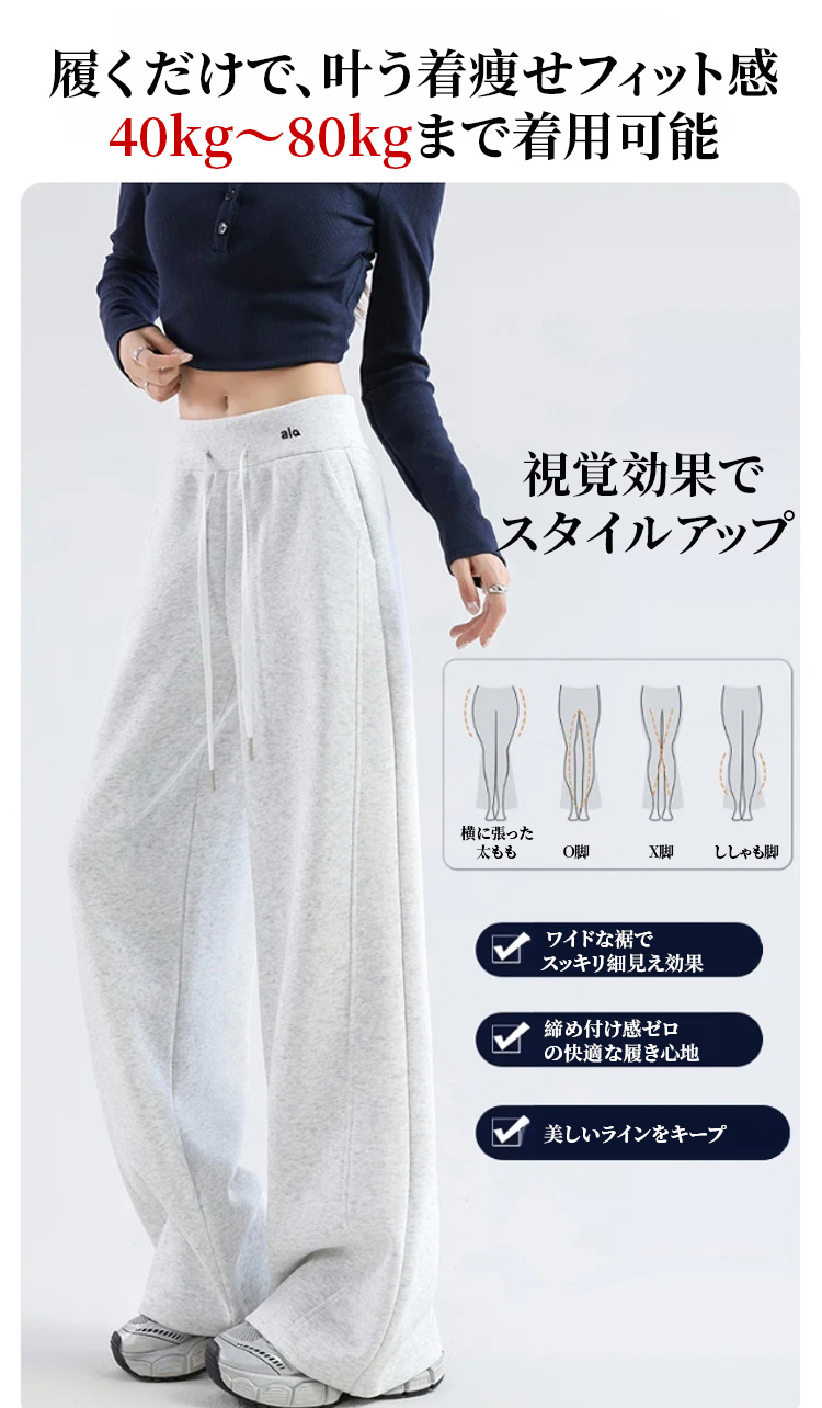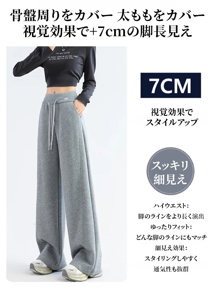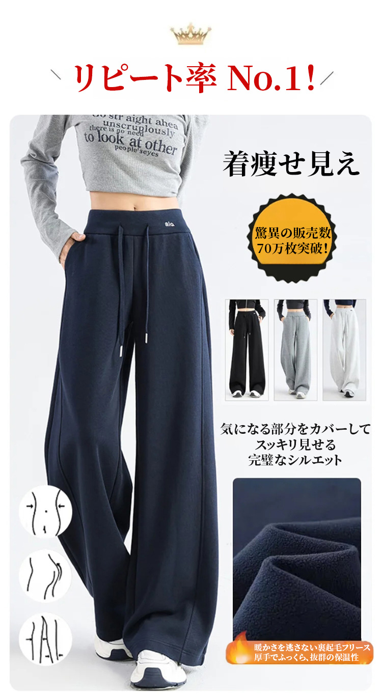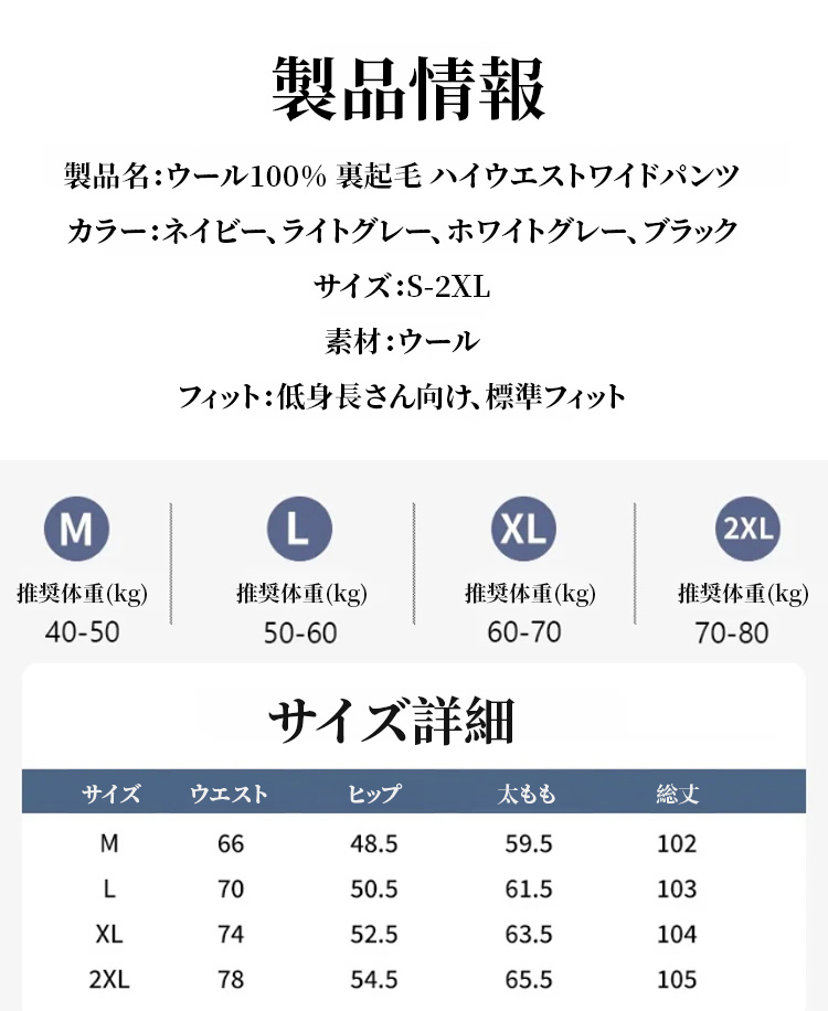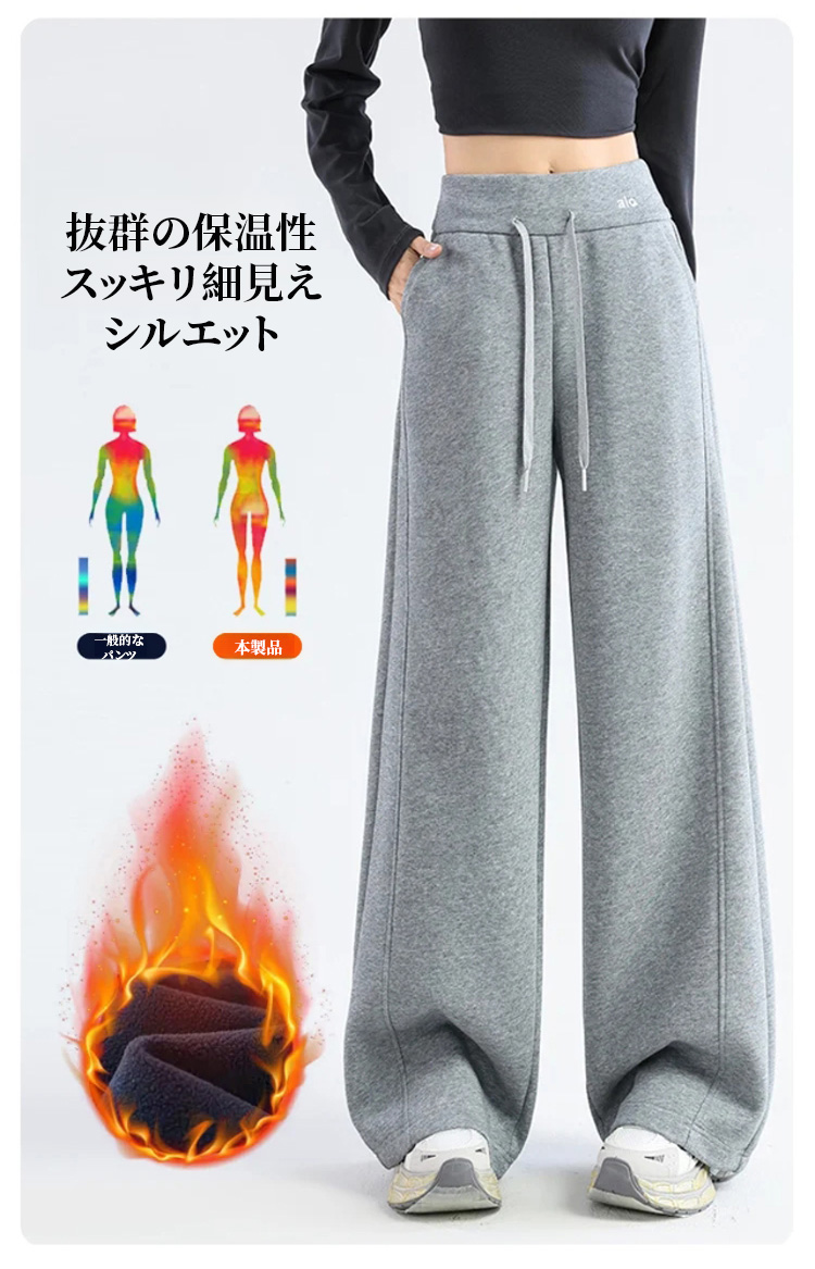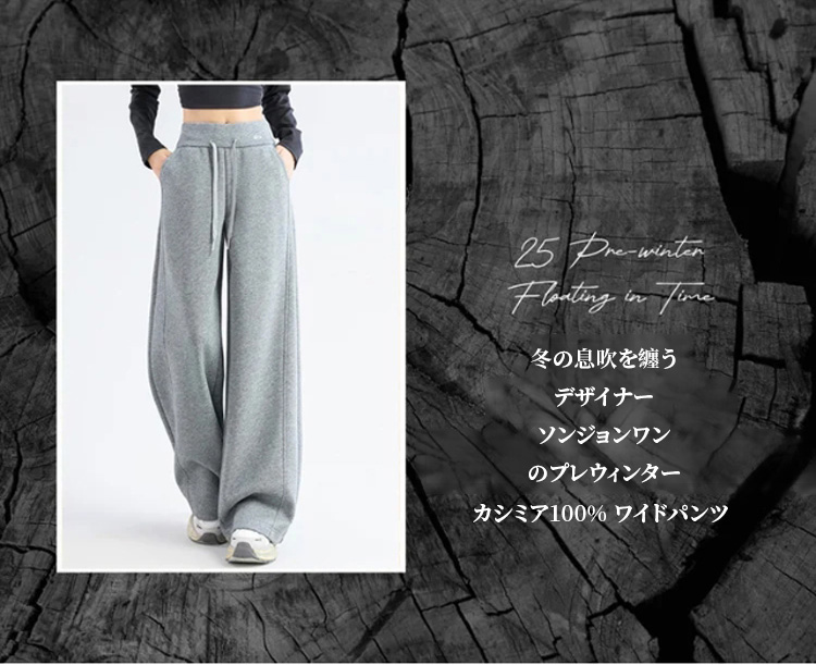 ウール100% 裏起毛 ハイウエスト 無地 ワイドパンツ
