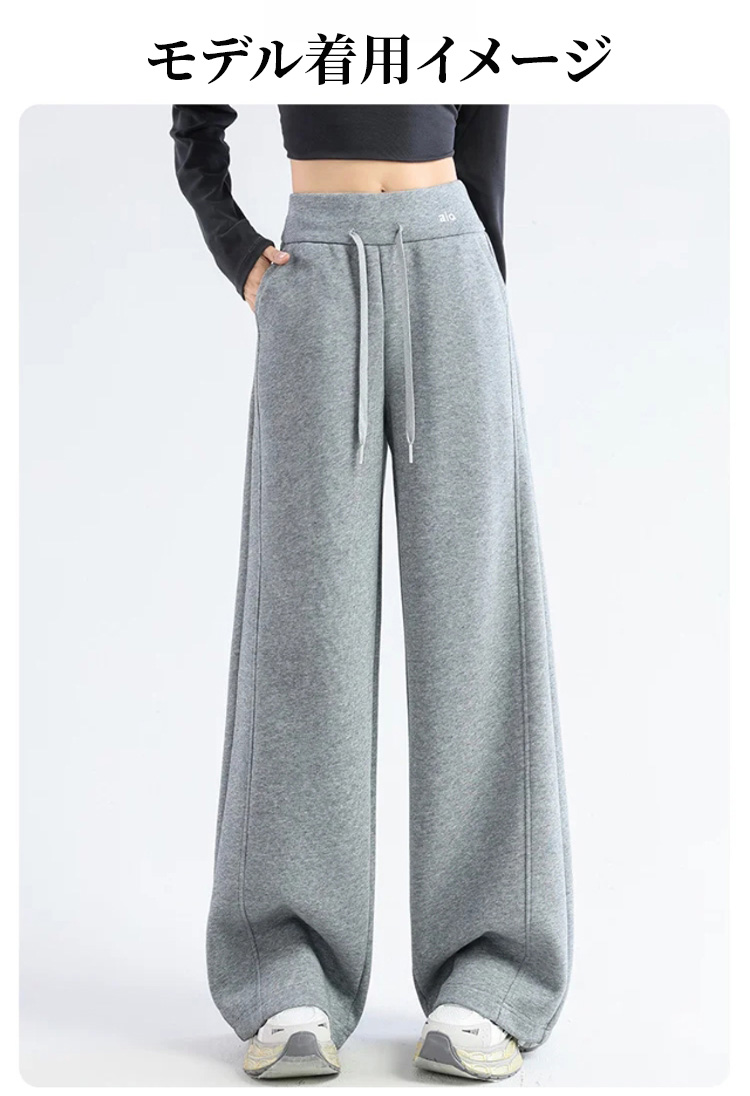 ルーズ 無地 裏起毛 厚手 ウエストゴム ワイドパンツ