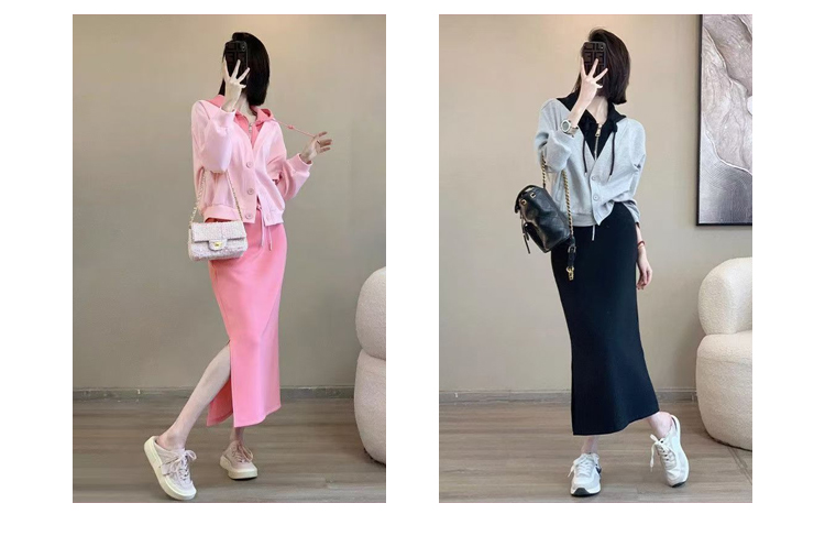 長袖 折り返す 無地 ジッパー付き ロング ニットワンピース