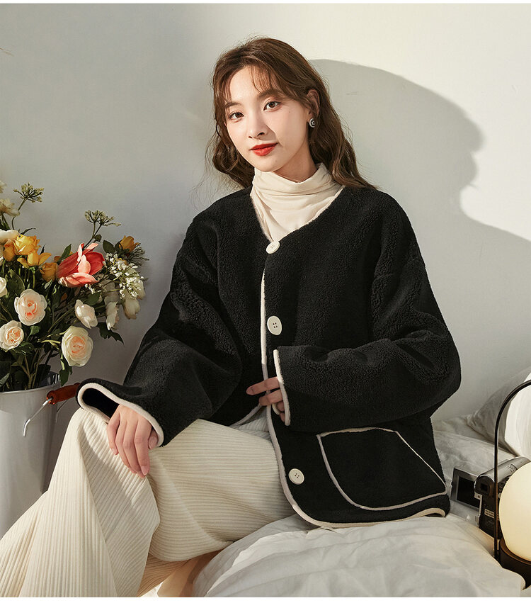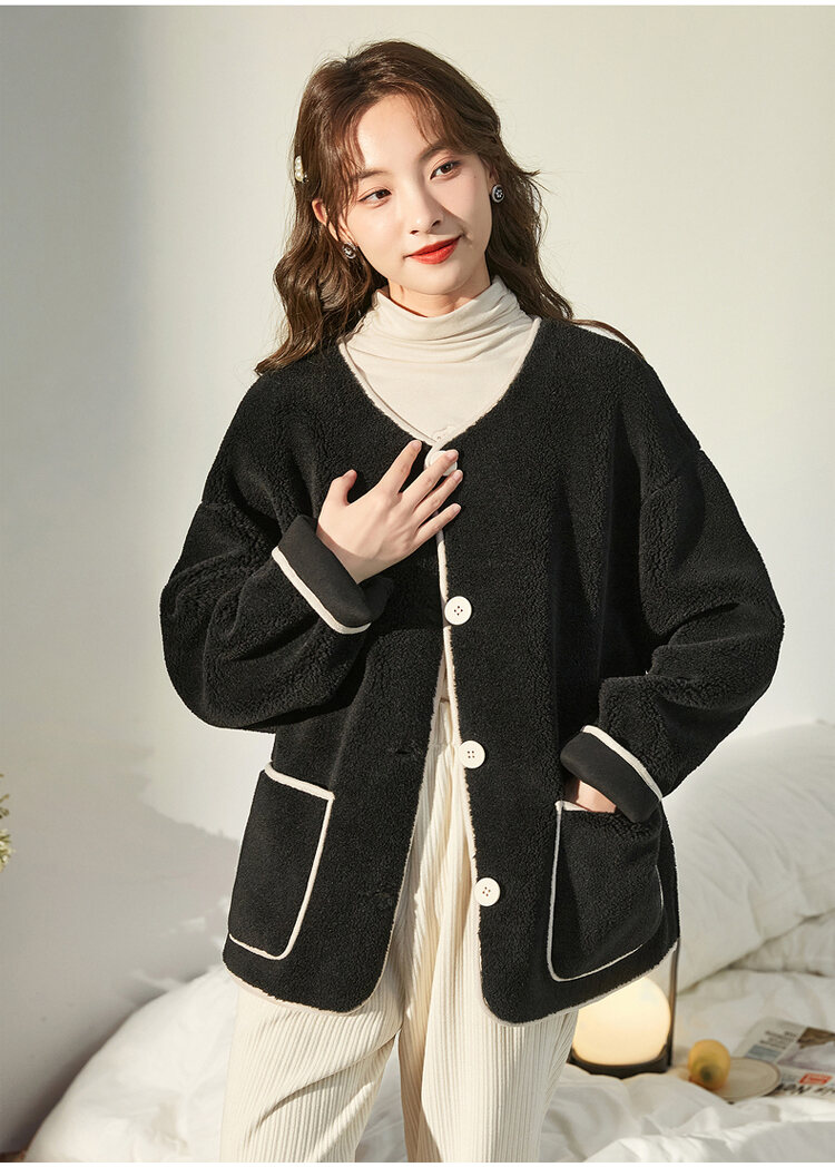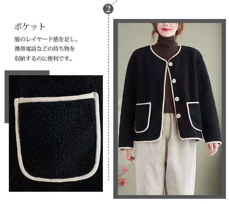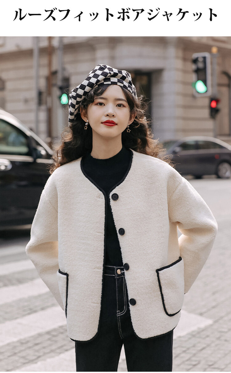 レディース ルーズ フィット ボタン付き 無地 ジャケット