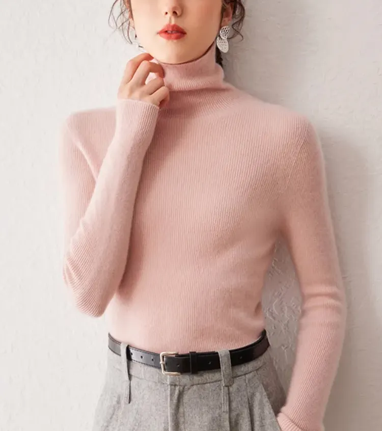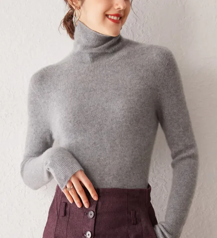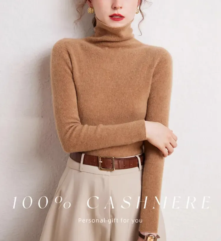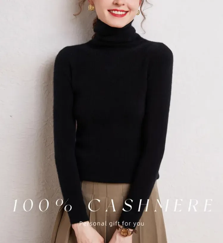 レディース タートルネック カシミヤ 無地 ニット