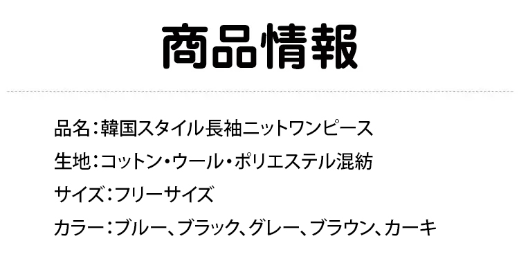 韓国スタイル 長袖 ニット 無地 ロング ワンピース