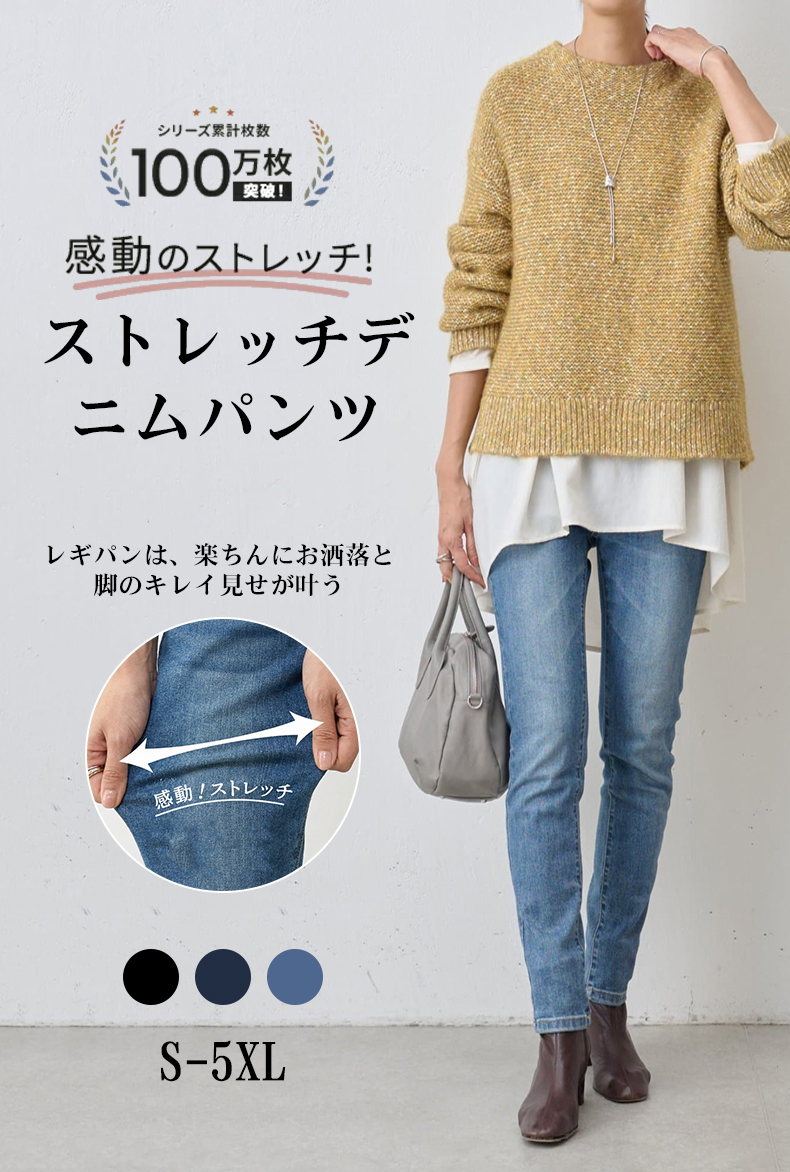 ハイウエスト ストレッチ スキニー 無地 ジーンズ