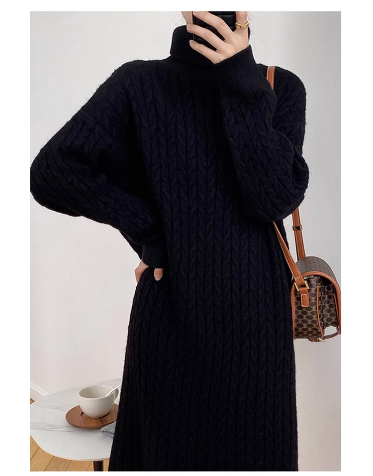 ハイネック 無地 ハイネック ルーズ ニットワンピース