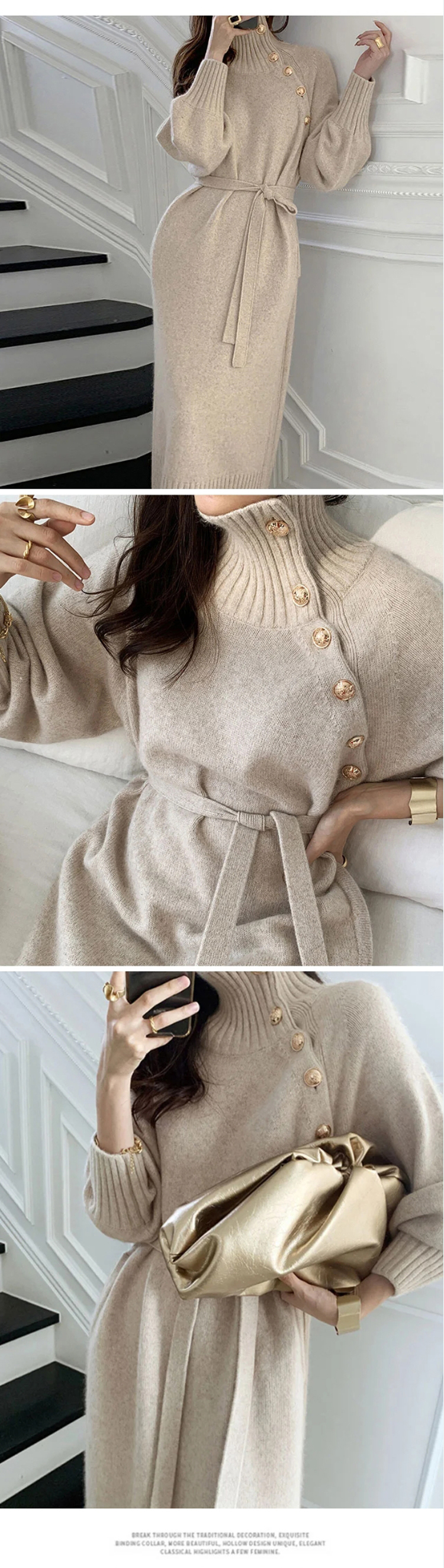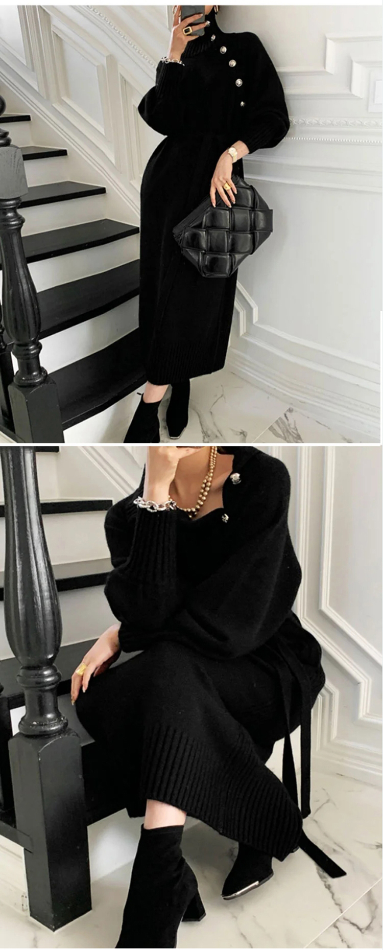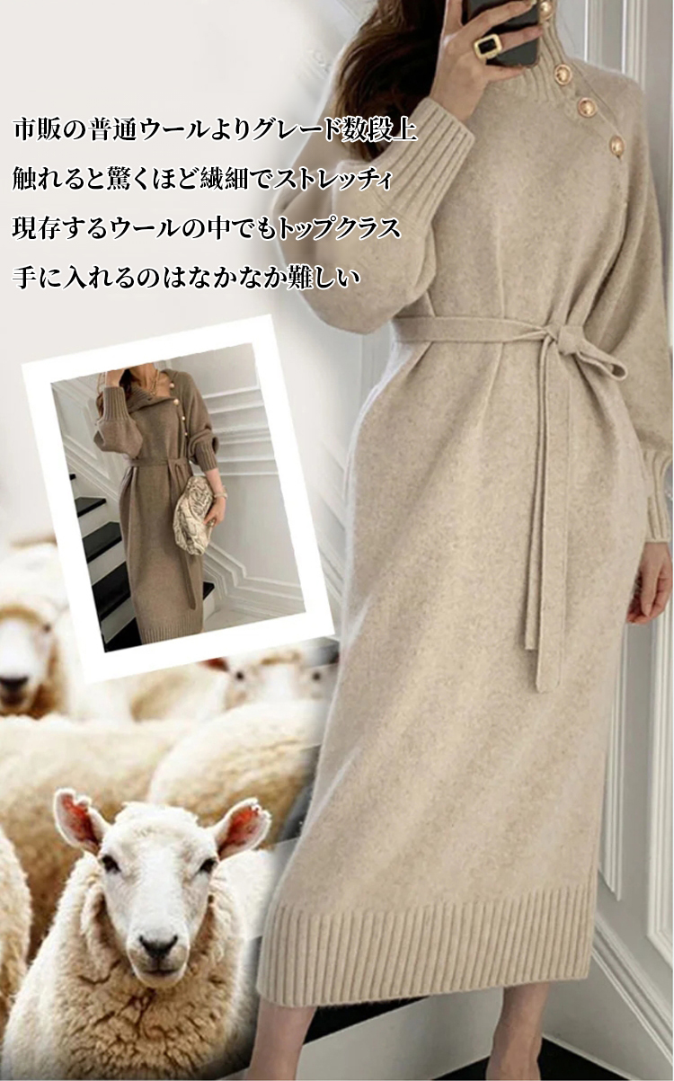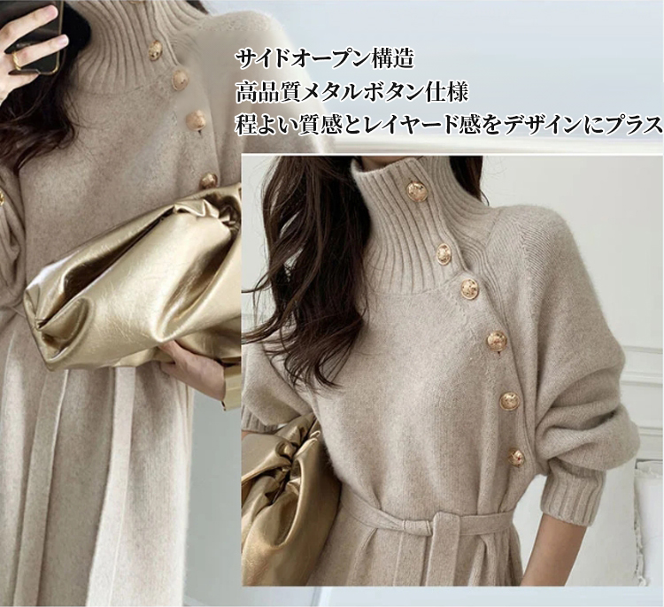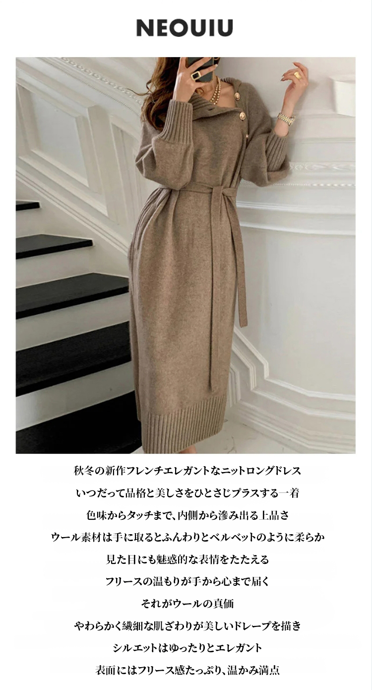 秋冬の新作 フレンチ エレガント ロング ニットワンピース