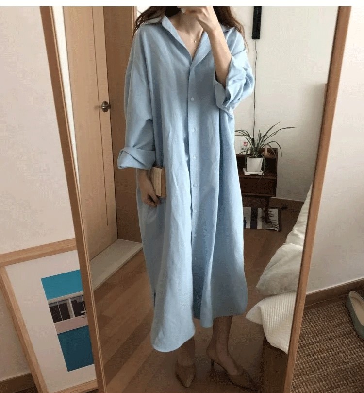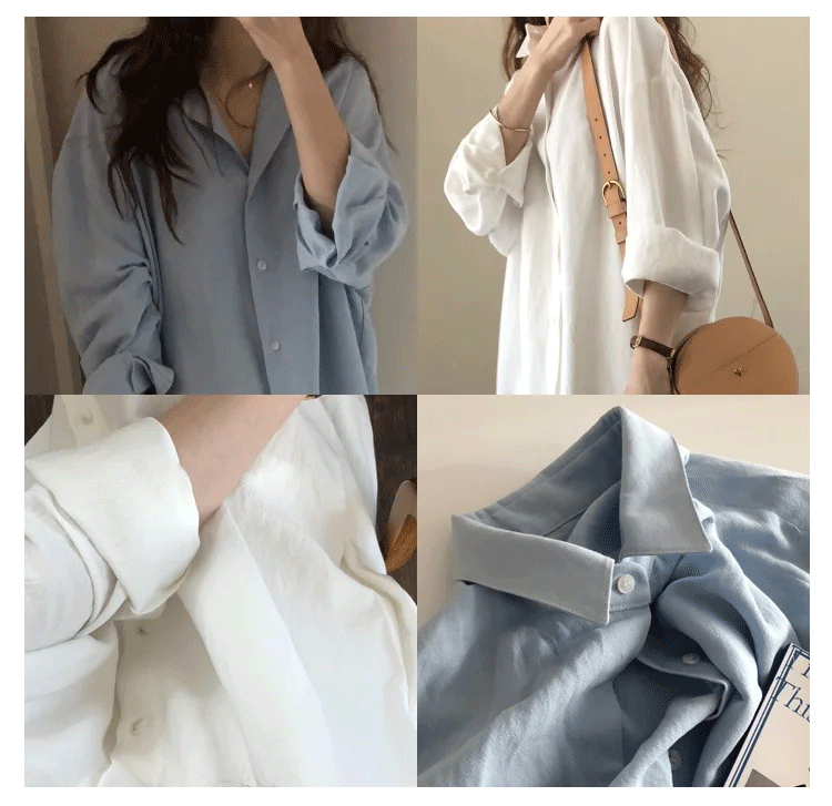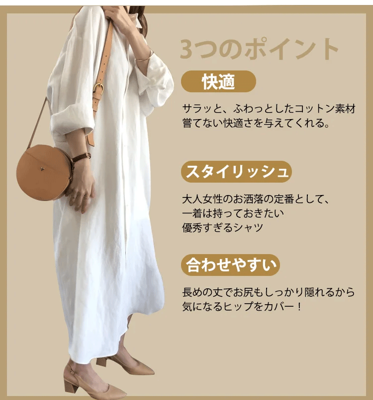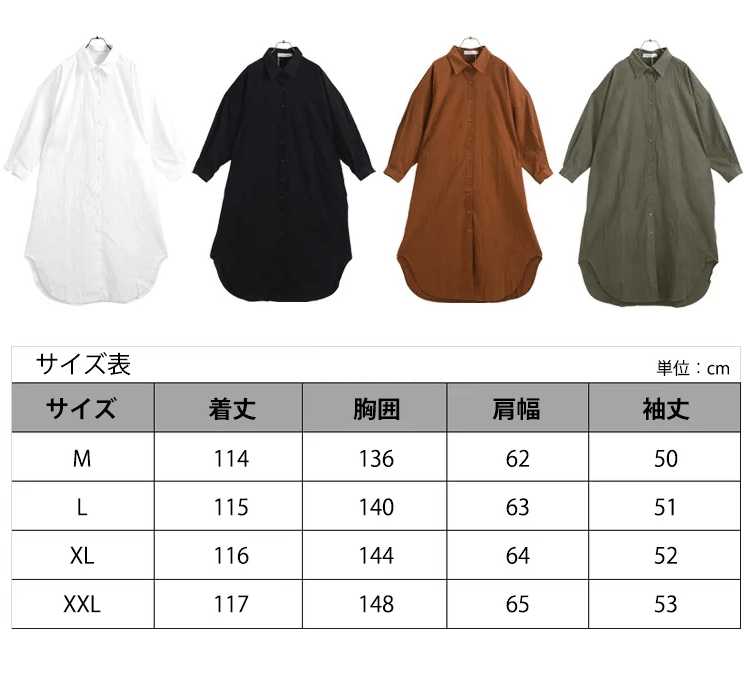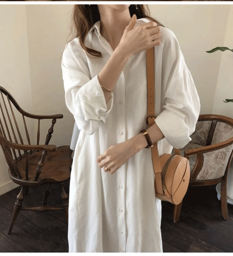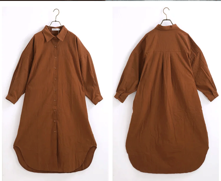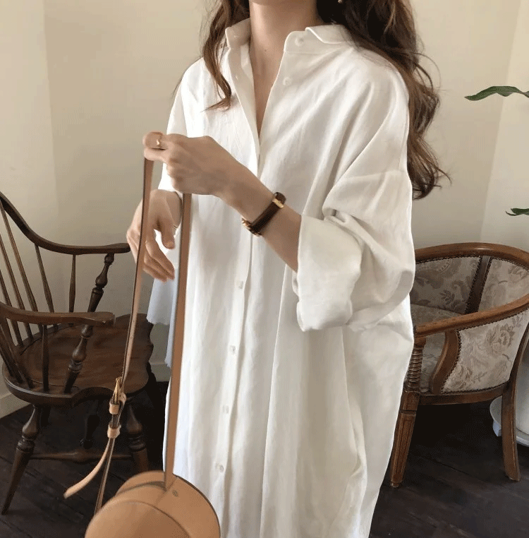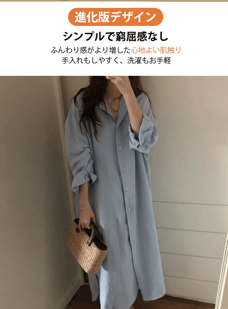 定番 無地 清新 ロング丈 綿麻 シャツ