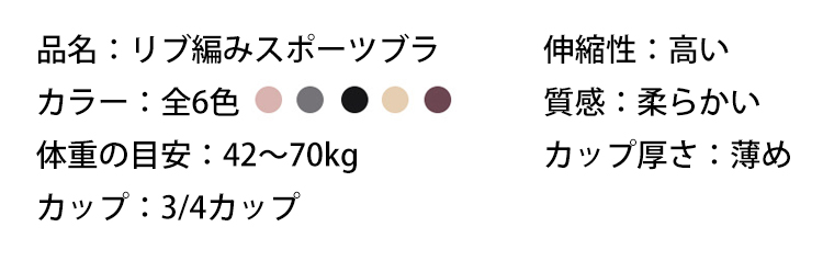 リブ編み スポーツ ブラジャー